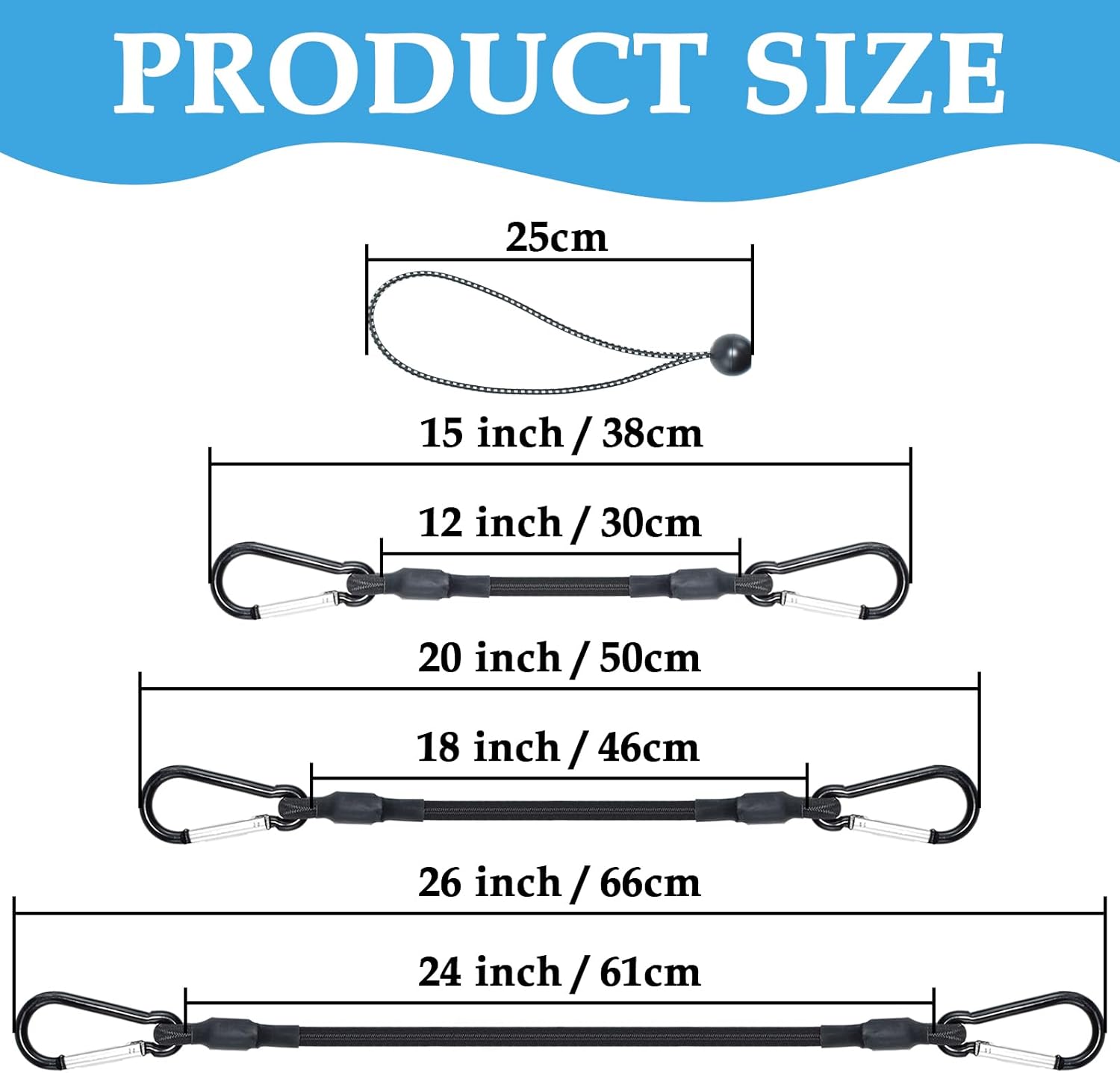 【Multiple Uses】Outdoor Bungee Cords widely used for indoor, outdoor tents, bicycles, laundry, trailers, RV, motorcycles. Short bungee cords with hooks meet most of your securing cargo needs and is a must-have tool for daily use.