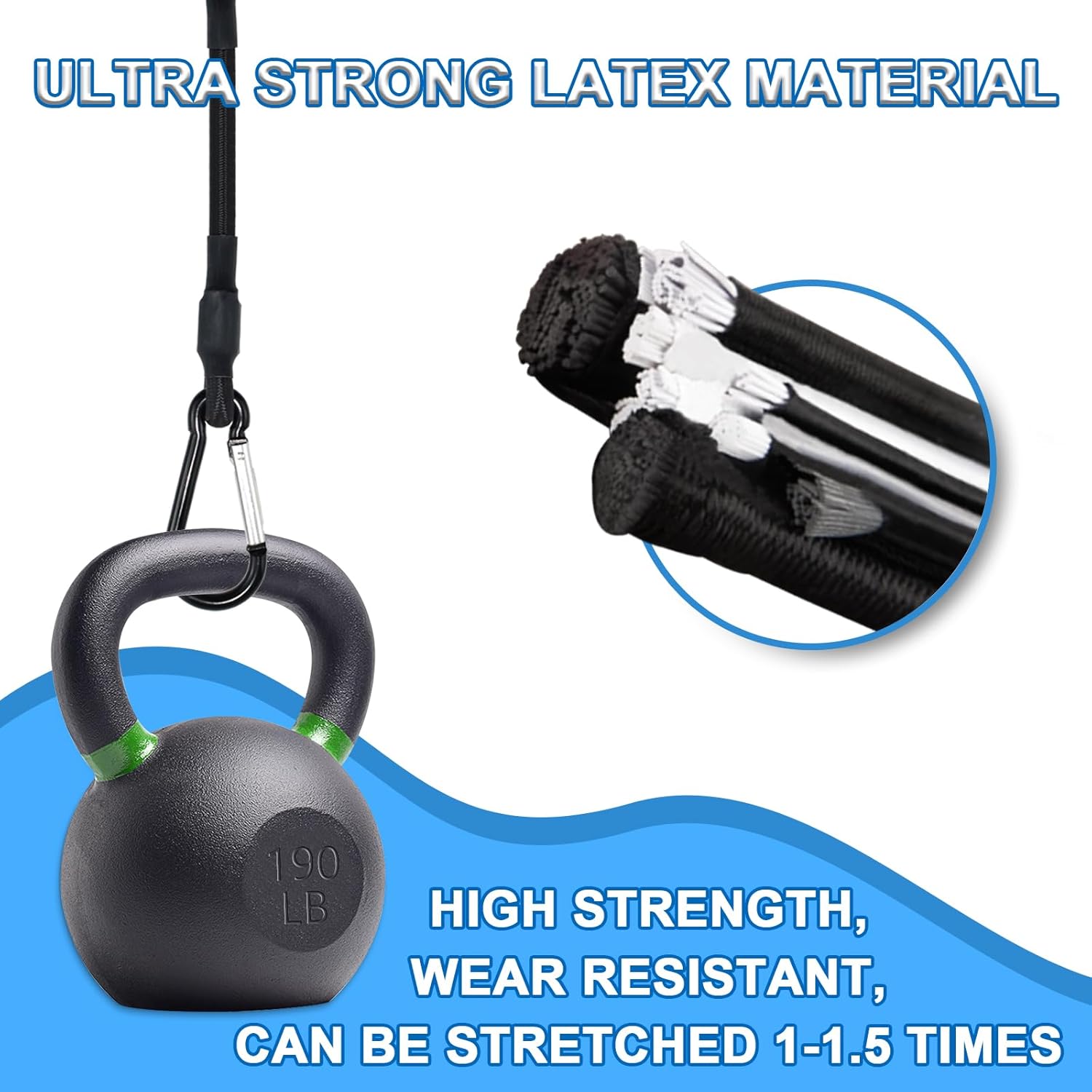 【Excellent Latex Material】Heavy Duty Bungee Cords are made of high quality latex yarn and covered with reinforced double braided nylon yarn to ensure a good tensile force of up to 200 lbs and a longer service life, and UV isolation.