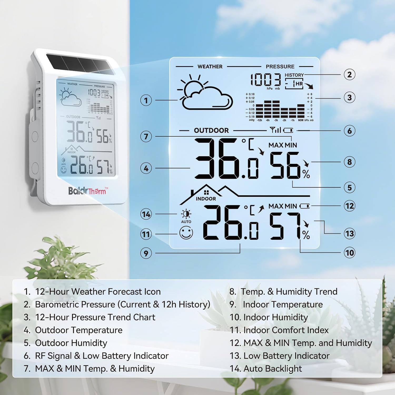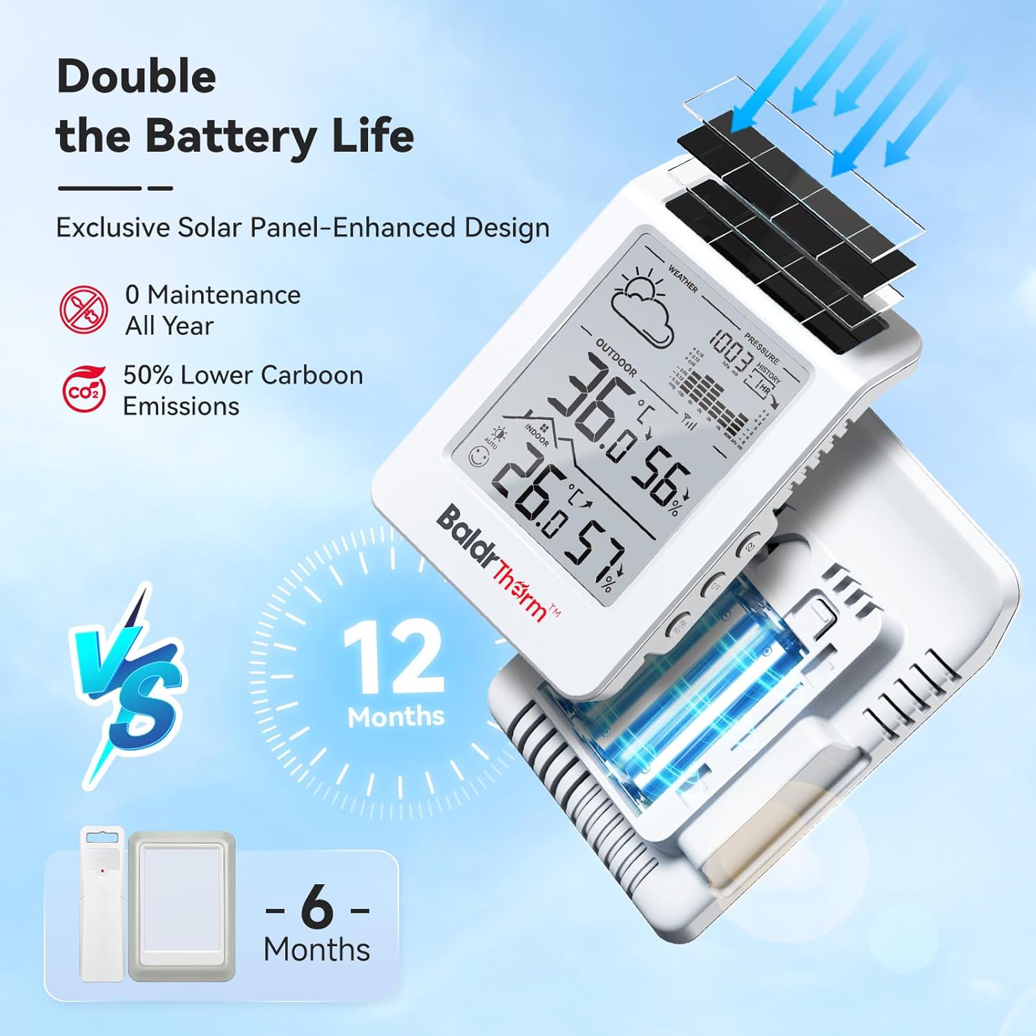 Solar-Powered Range Extension & 12-Month Battery Life: It comes with exclusive solar panel range tech, plus primary battery power—so you get up to 12 months of use on one charge. No more taking it apart to swap batteries nonstop! Whether it’s on your living room shelf or outside by the patio, it stays consistently reliable for monitoring—total hassle-saver.