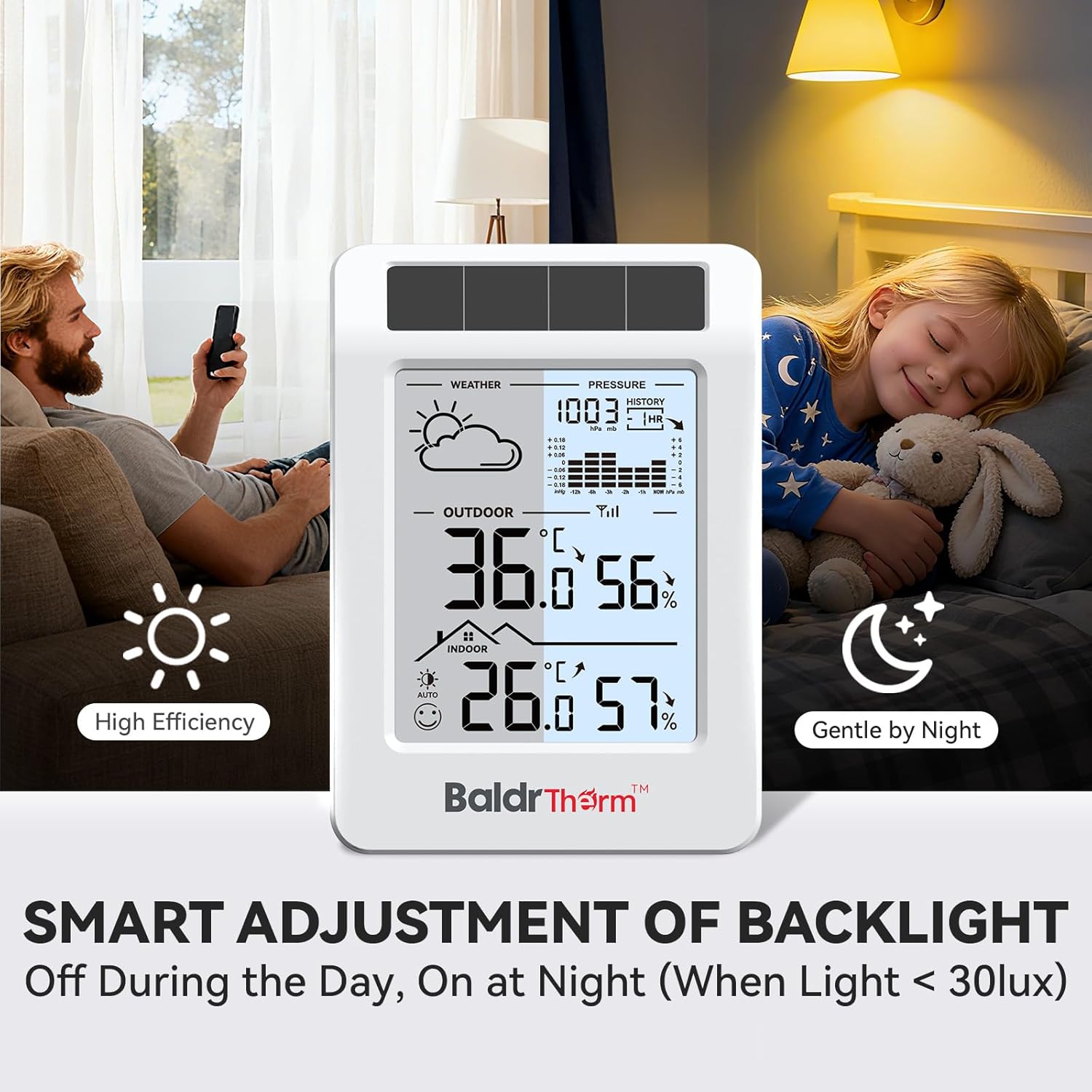 Customers appreciate the weather station’s dual-zone indoor and outdoor temperature and humidity monitoring capabilities, with one customer noting it’s perfect for checking readings at night. The device features a smart light-sensing backlight that dims in bright light, and one customer mentions the built-in solar panel extends battery life. They like its ease of use and visibility, with one noting the clear view from various angles, while another appreciates the pressure trend chart feature.