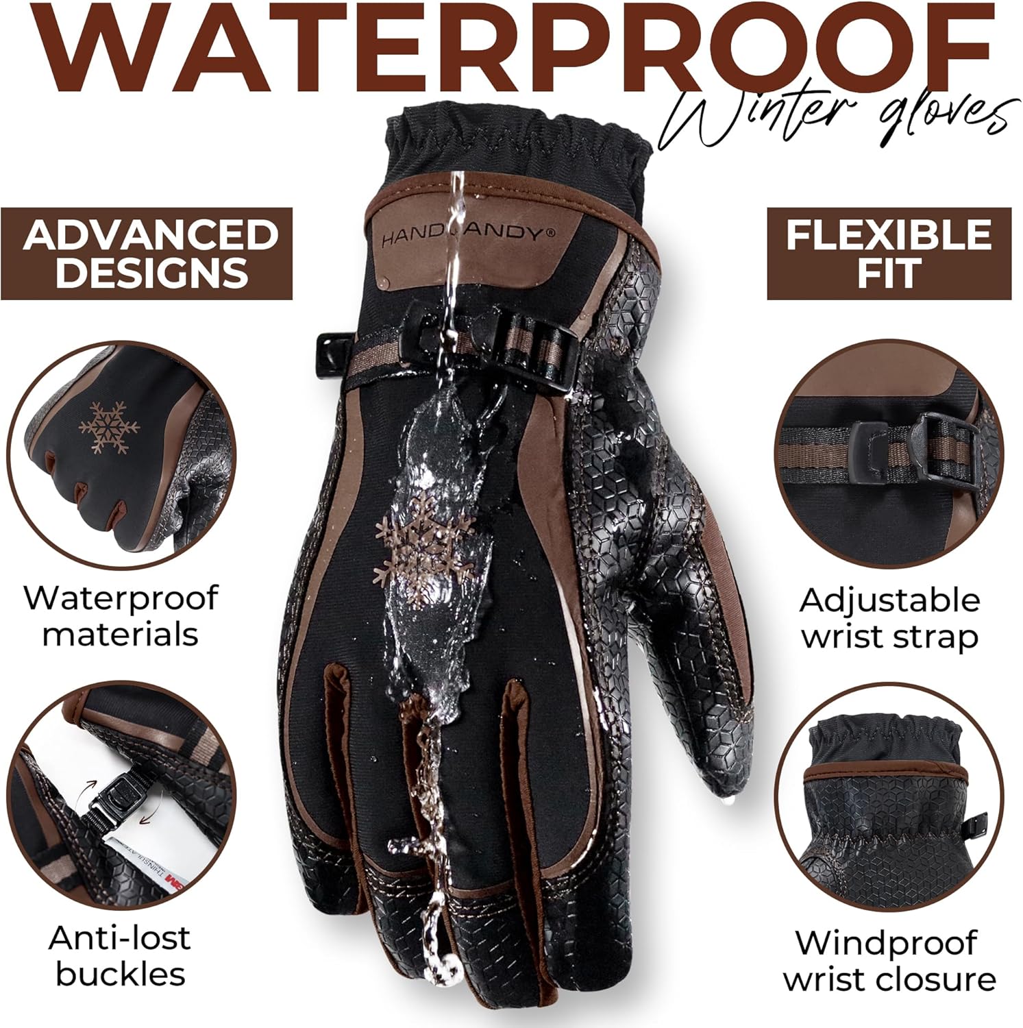 Total Weather Protection: These gloves for cold weather feature a flexible waterproof and windproof backing combined with water-resistant finger gussets, offering reliable defense against snow and light moisture, while allowing natural movement and comfort in freezing temperatures. Note: While highly water-repellent, the gloves are not fully waterproof and are not recommended for prolonged immersion in water
