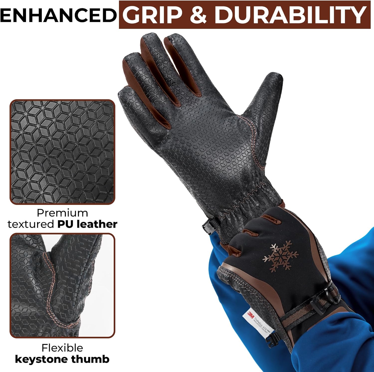 Enhanced Grip & Durability: Premium textured PU leather palm with reinforced stitching and keystone thumb design ensure flexibility and non-slip grip, making these insulated winter work gloves ideal for demanding winter tasks