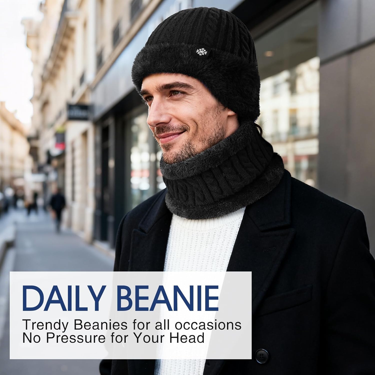 1 pc warm winter Beanie with Earflap, 1 pc Neck Warmer to help you get through the cold winter. Hat circumference: 22″-24″, Height: 9″. Circle scarf circumference: 19.5″-24.5″ ,height: 8.66″.Designed with exceptional elasticity, this stocking cap is a one-size-fits-all solution, accommodating any head size with ease, offering a secure and snug fit for everyone