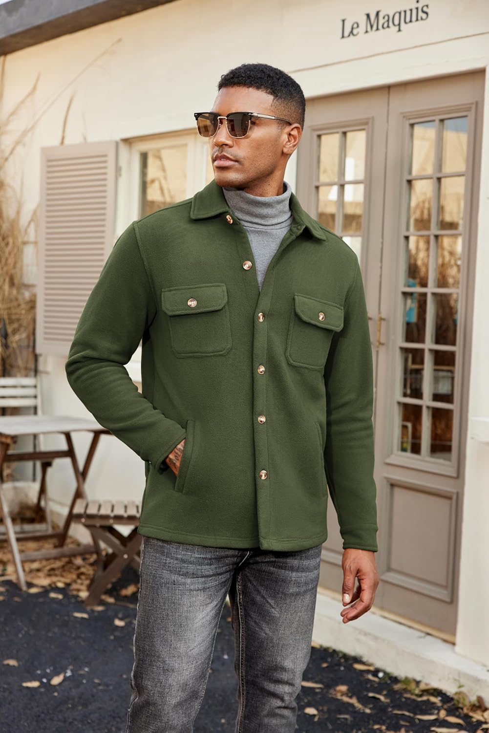 COOFANDY Men’s Polar Fleece Shacket Casual Button Up Shirt Jacket