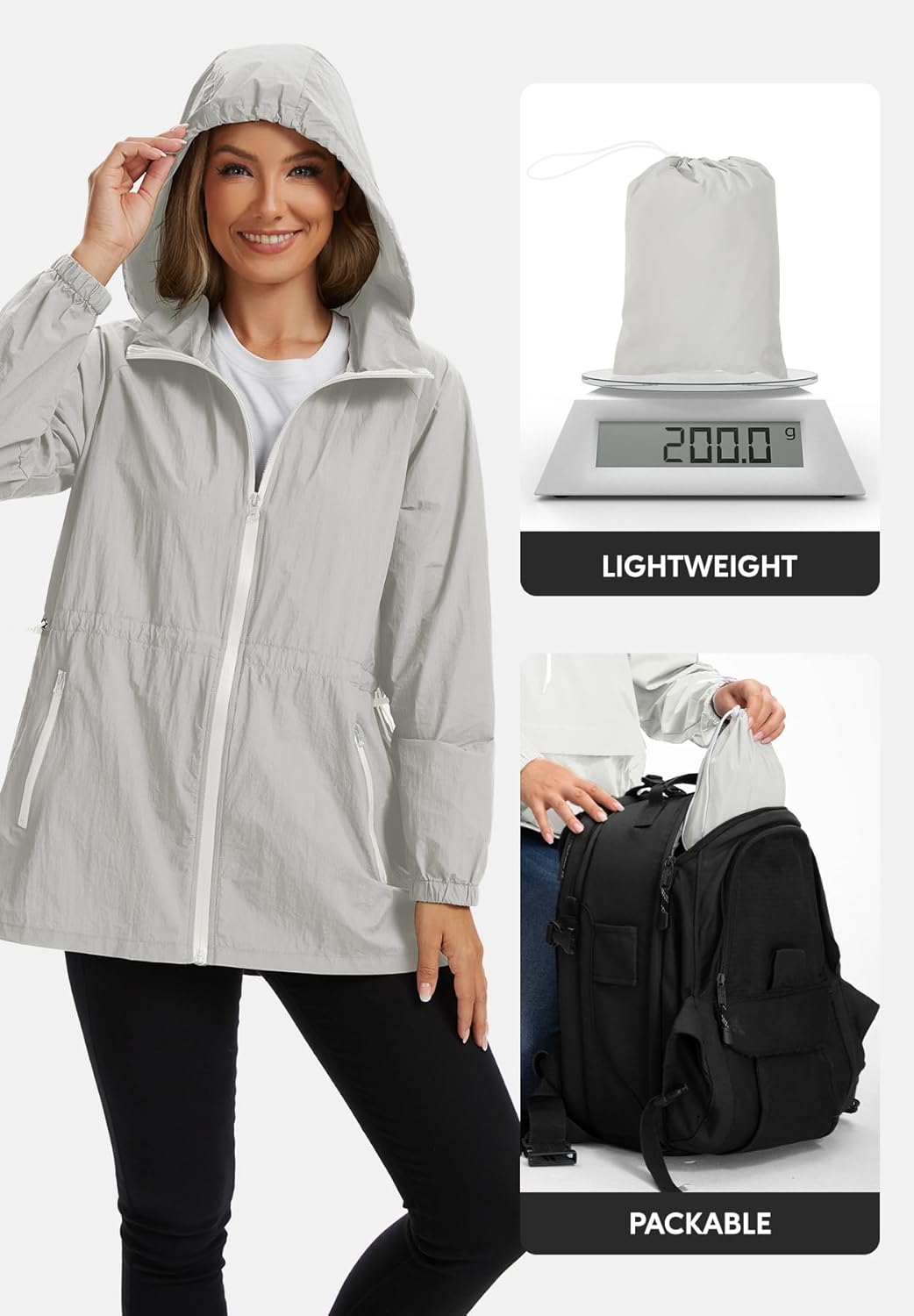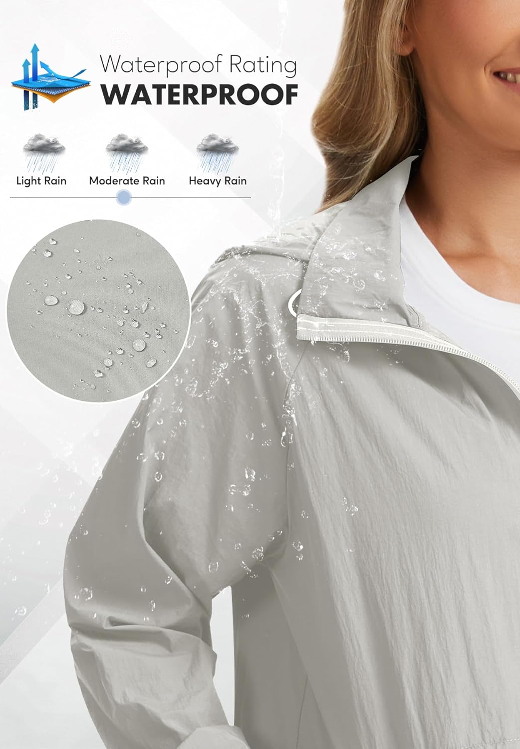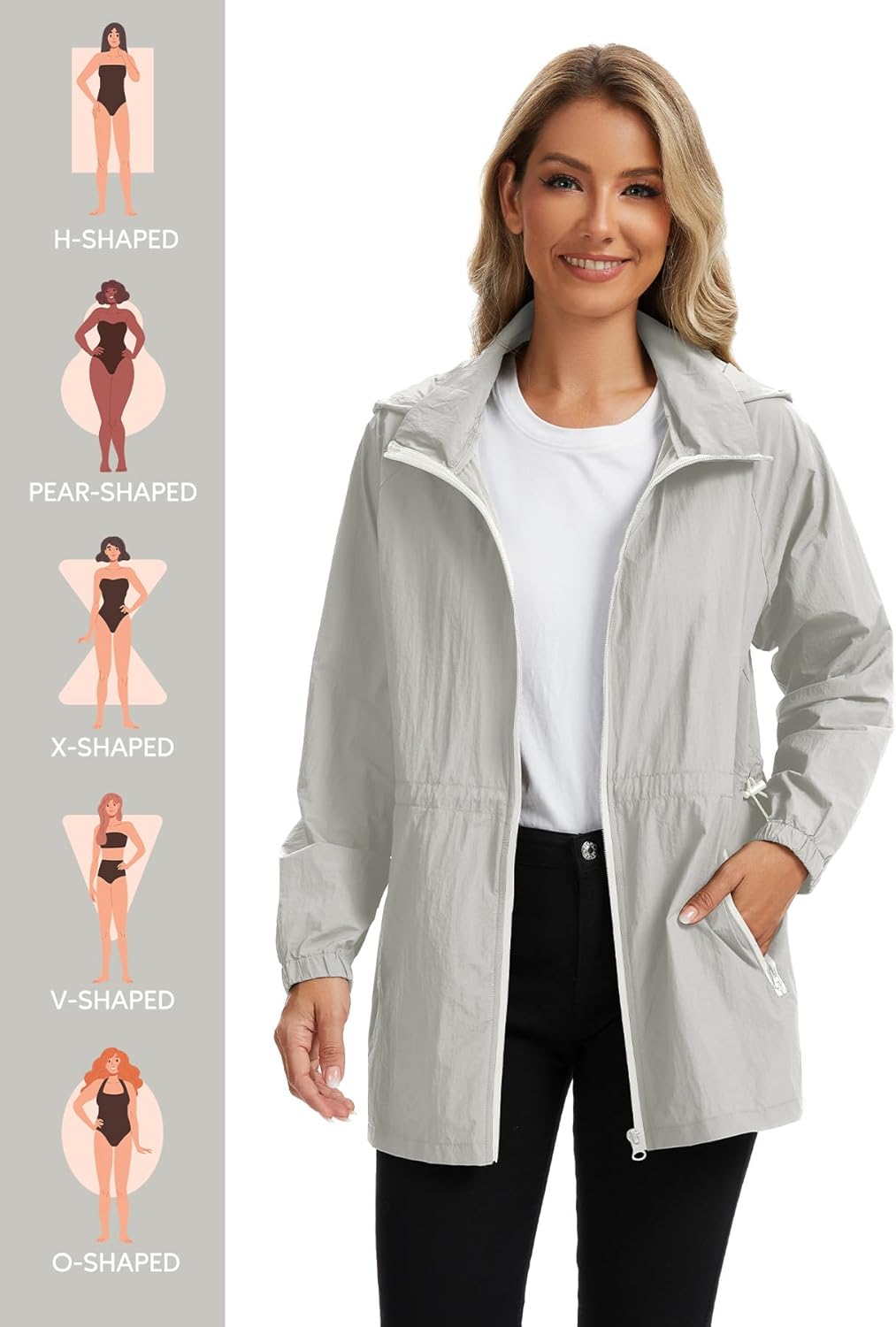 This lightweight waterproof jacket combines style and practicality, featuring premium coated fabric for excellent rain protection and adjustable drawstrings for a flattering fit. With elastic cuffs, a windproof hood, and compact foldable design, it’s perfect for spring showers, summer adventures, or daily commutes. Durable and breathable, this versatile jacket offers all-season durability while effortlessly pairing with casual or athletic outfits. Stay dry, comfortable, and chic in unpredictable weather.