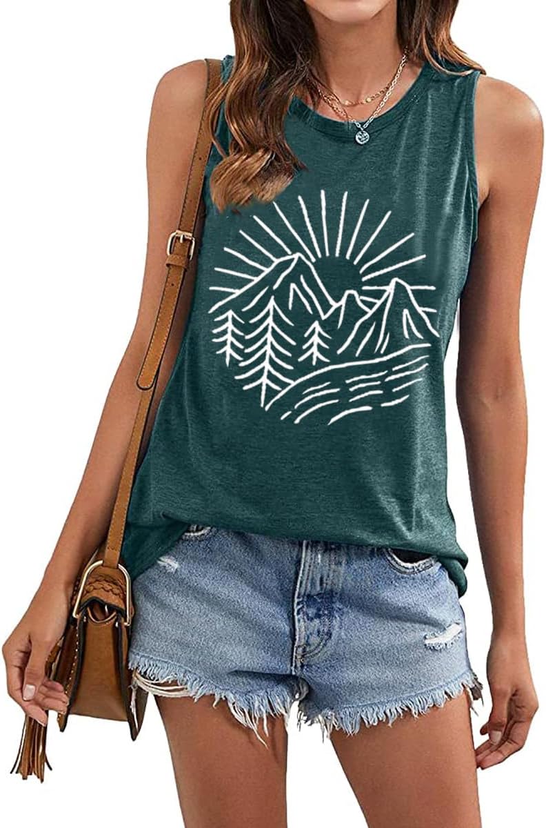 Style: This women hiking mountain tank is positive and energetic, shows nature love with mountain sun tree river lake printed graphic tank top. Suits for outdoor adventure awaits t shirt, very trendy and cute summer tanks top women beach, funny graphic workout tanks for women.