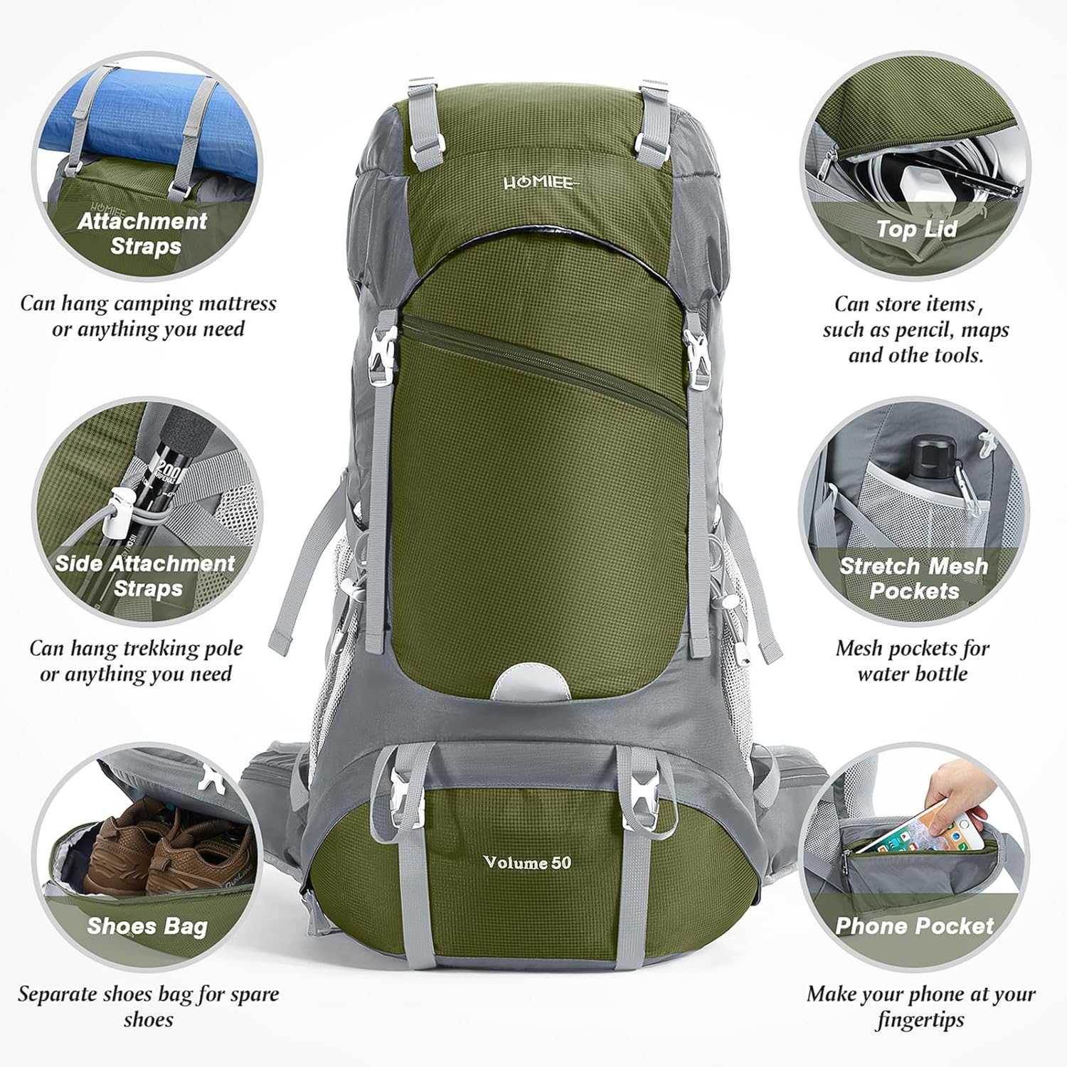 HOMIEE Hiking Backpack Trekking Backpack 45L Large Capacity Men Women Foldable for Mountaineering Climbing Skiing Camping