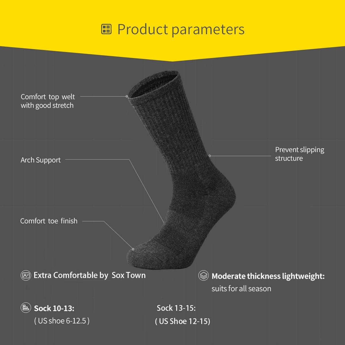 These Merino Wools cushioning hiking crew socks made With Moisture Wicking material that you’ll enjoy a breathable fit and cozy feeling.