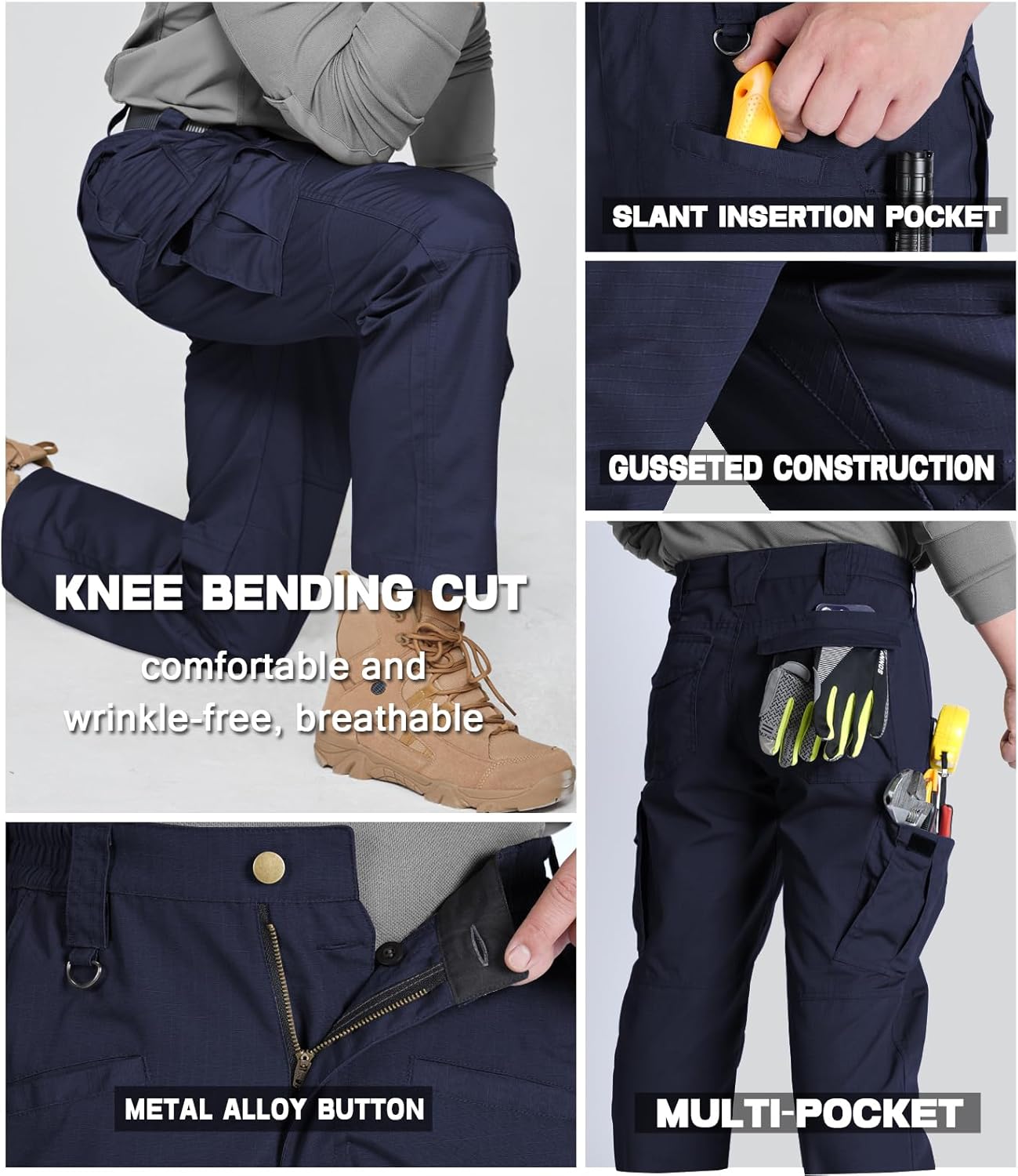 Cargo Work Pants for Men Ripstop Tactical Pants Lightweight Water Resistant Hiking Construction Pants with Multi Pockets