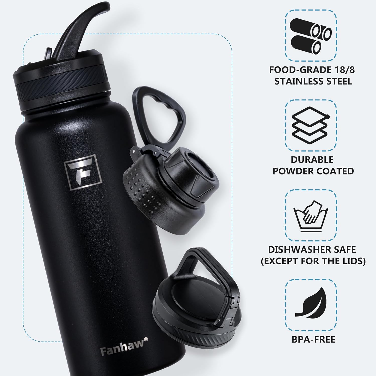 INSULATED WATER BOTTLE – The Fanhaw 32 oz bottle features advanced vacuum insulation, keeping drinks hot for 12 hrs or ice-cold for 24 hrs. Ideal for icy water after workouts or hot coffee on winter adventures