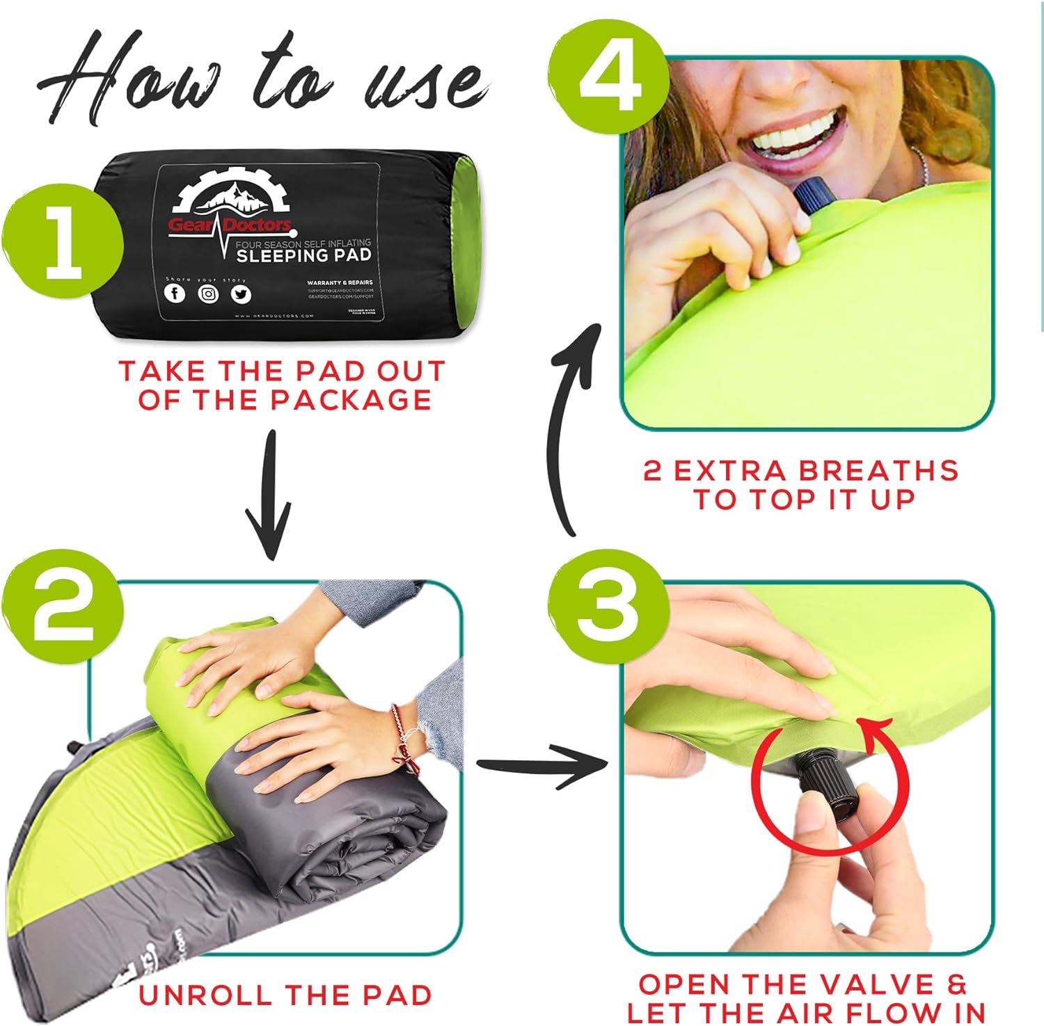 ๐๐๐ฌ๐ฒ ๐๐๐ญ๐ฎ๐ฉ ๐๐ง๐ ๐๐๐ค๐๐๐จ๐ฐ๐ง: Inflating and deflating our sleeping pads is as easy as 1-2-3. How easy? easier than air mattress camping Just twist the padโs leak-proof valve and unroll your pad, air starts filling up the padโs open cell foam. You only need to add a few more puffs of air and your pad can hold its firm shape for days! perfect sleeping mats for adults, sleeping pads for floor