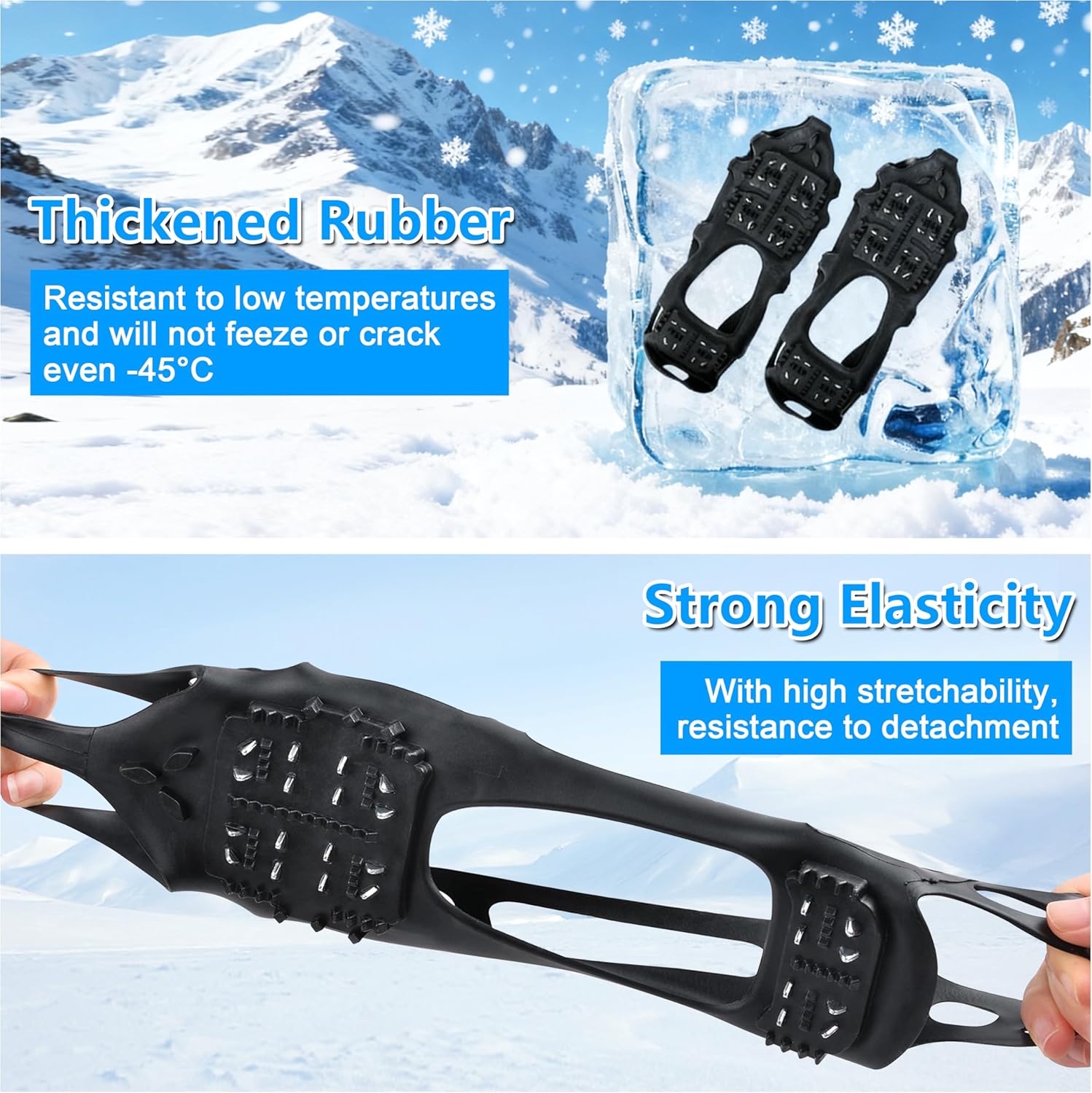 【Wearing with Comfort】Ergonomic design makes the ice cleats for shoes and boots comfortable to wear. Full-sole coverage provides 360 degrees of traction for winter everyday activities, suitable for icy, snowy and slippery conditions, reduce the risk of falls and increase safety when walking on snow and ice