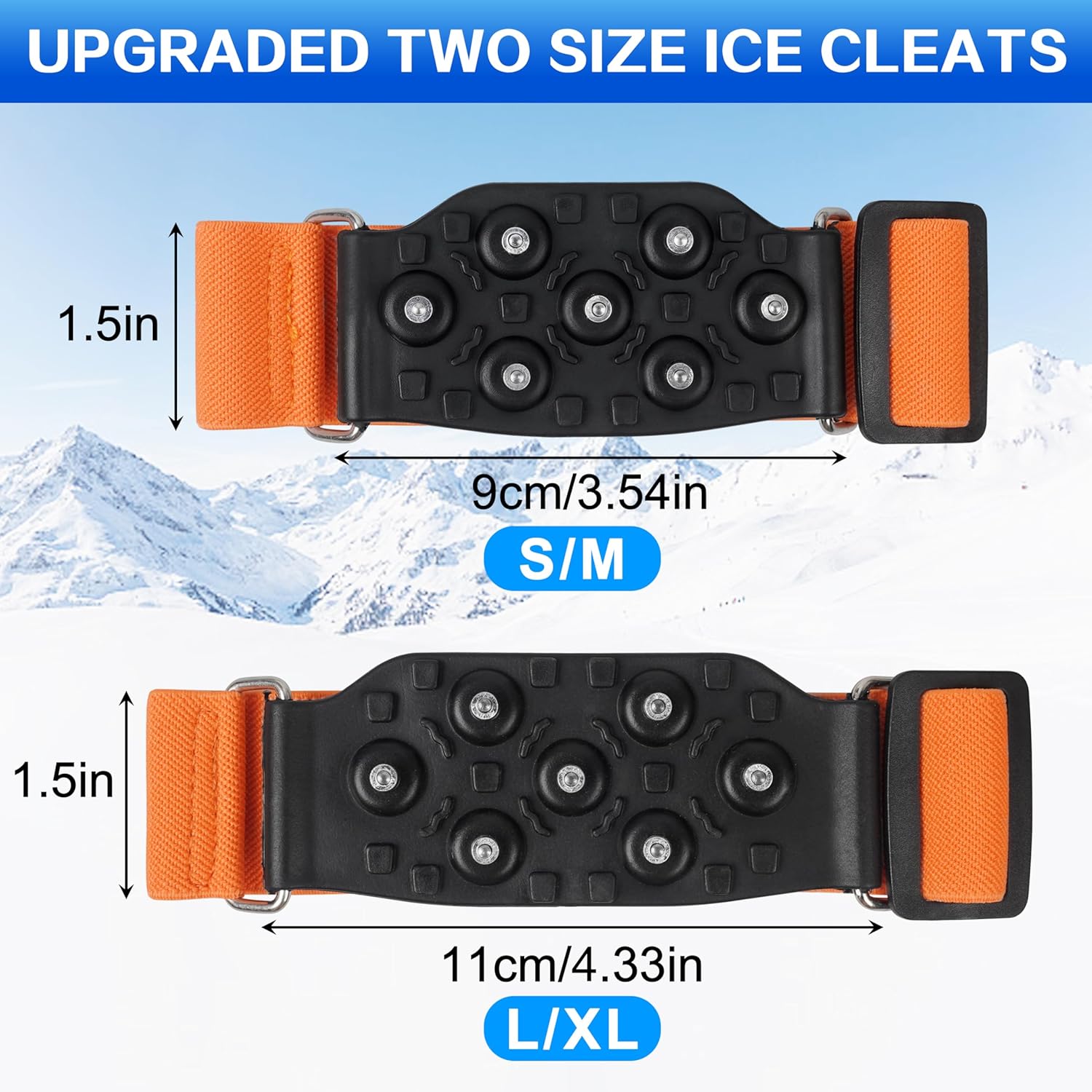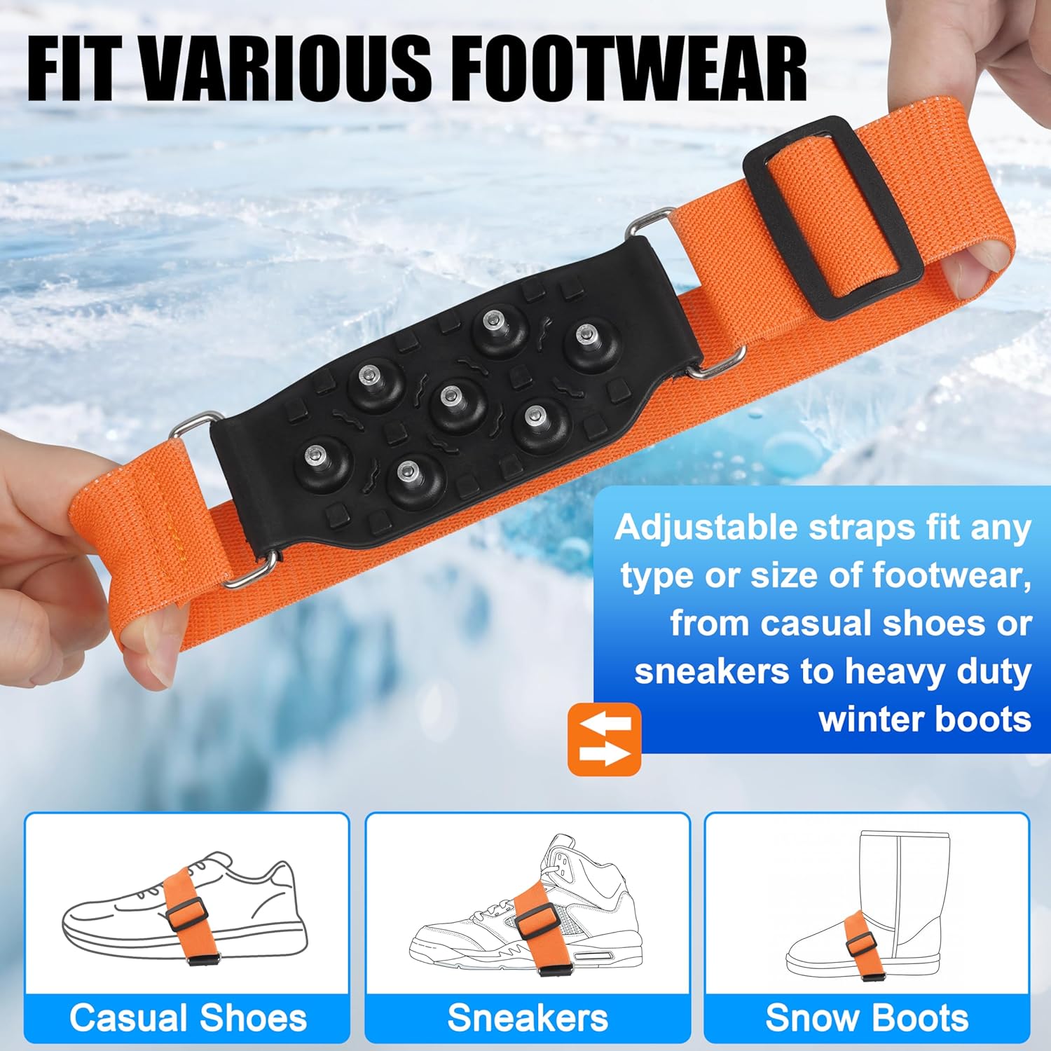 【ONE SIZE FITS ALL】The ice cleats are designed with an adjustable elastic strap to fit any foot or shoe size, great for family use. Provide a secure fit for all types of footwear. Suitable for men and women