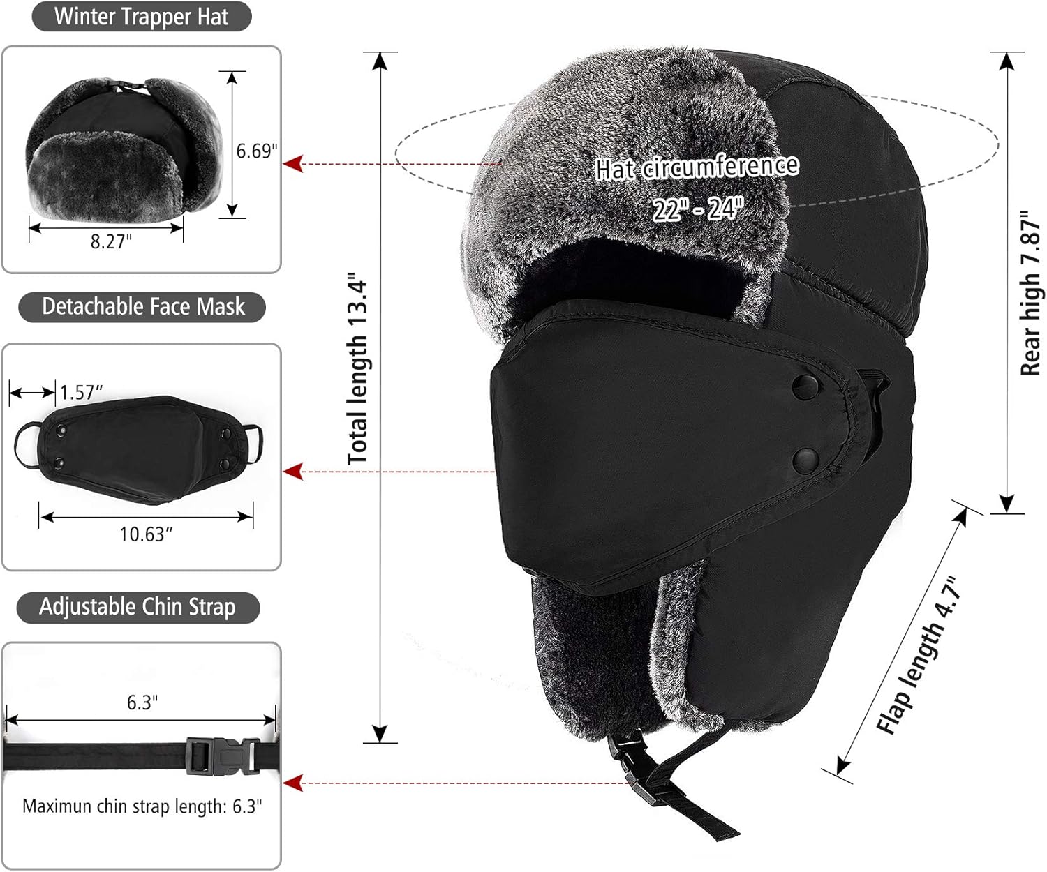 mysuntown Unisex Winter Trooper Hat Black Hunting Hat Ushanka Ear Flap Chin Strap and Windproof Mask.