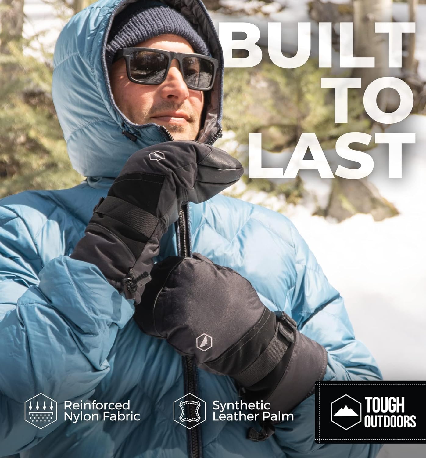 Customers find these mittens keep hands dry and warm, with good quality and value for money. They are comfortable and somewhat water resistant, with one customer noting that water never penetrated the mitten. The fit and size receive mixed feedback – while some say they fit well around the wrist and hand, others find them too tight, and the size chart is not accurate. Durability is also mixed, with some saying they held up in the snow while others report tearing along the thumb seams.