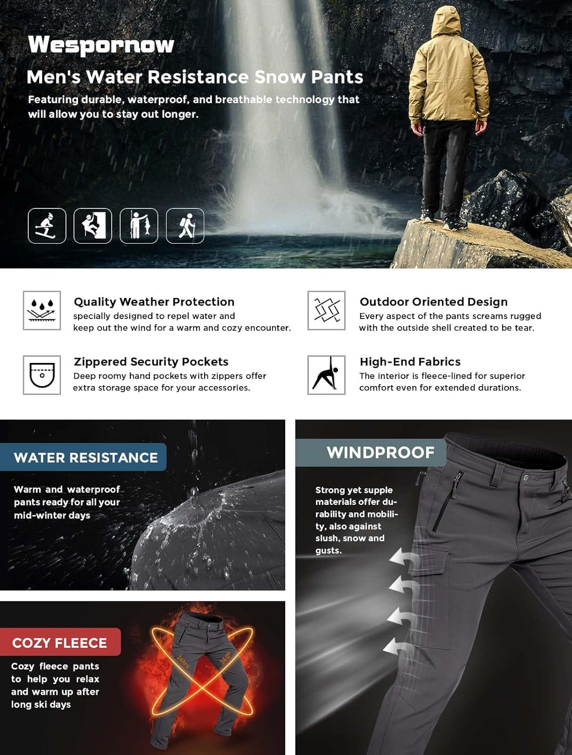 Customers find these snow pants highly water resistant, keeping them dry and windproof, while also appreciating their insulating properties and comfort. They are well-suited for outdoor activities like hiking and snowshoeing, and customers consider them good value for money. The fit and quality receive positive feedback, with one customer noting they’re not baggy or heavy. Regarding size, while some customers say the size is correct, others mention they run small.