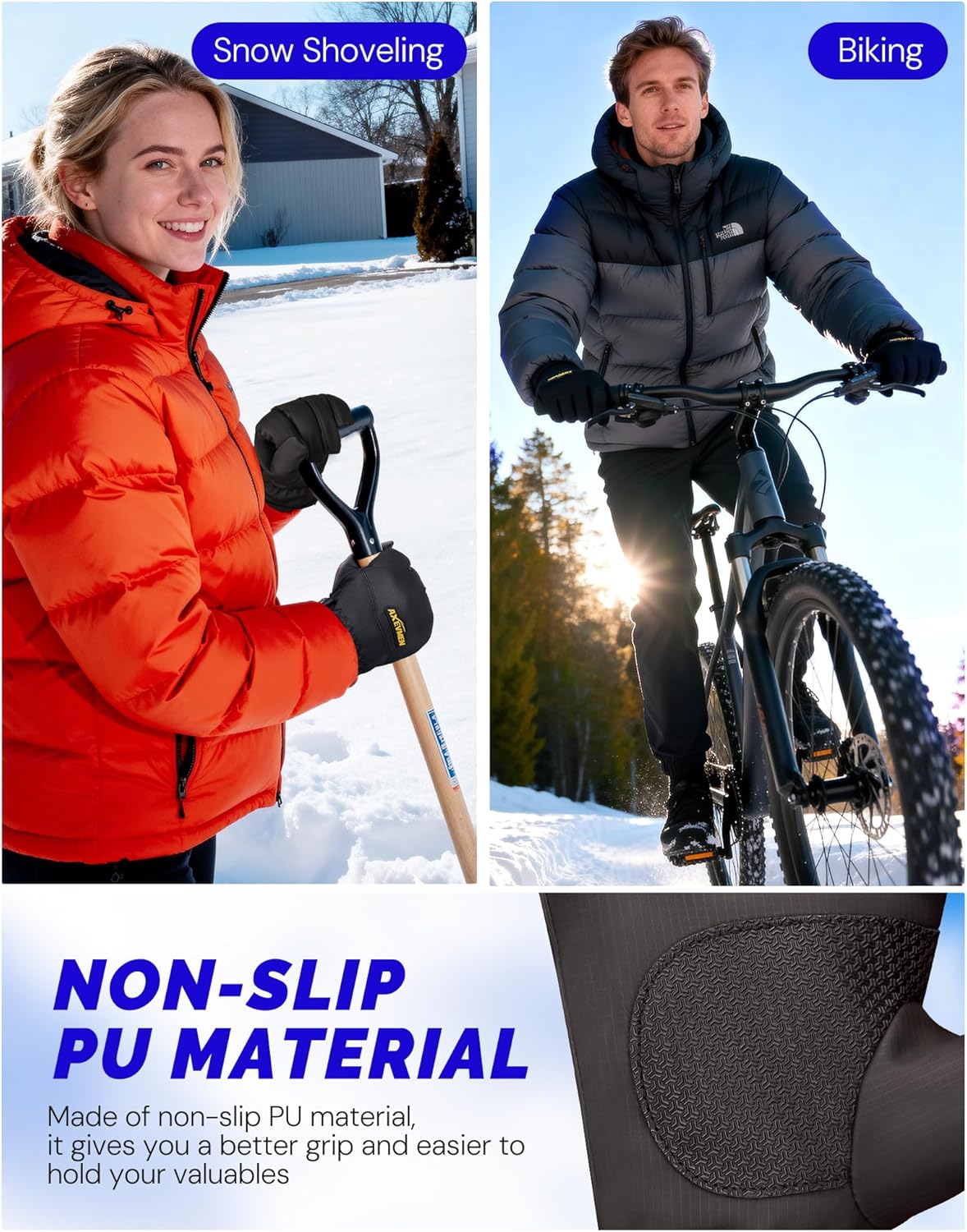 [Touchscreen Compatible] Our winter gloves feature highly responsive touchscreen functionality, with all fingertips made from conductive fabric for seamless phone operation. Stay connected and work efficiently without removing your warm gloves—perfect for answering calls, texting, or using electronic devices. Ideal for dog walking, jogging, deliveries, skiing, snowmobiling, snowboarding, hunting, or camping.
