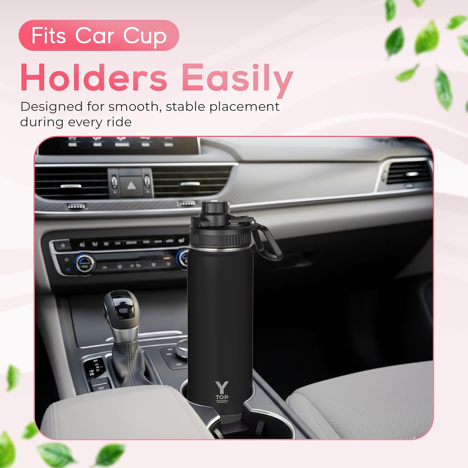 FITS IN YOUR CAR CUP HOLDER: Designed to fit snugly in standard car, truck, SUV, stroller, shopping cart and gym equipment cup holders, this dishwasher safe water bottle is perfect for commutes, road trips, rideshare drivers, fitness trainers, team coaches and carpooling families. Whether it’s a preschool drop-off or a quick errand you’re running, our easy to clean water bottle is slim and compact enough to fit nicely in console cup holders. Easy to fill, easy to carry and easy to love.
