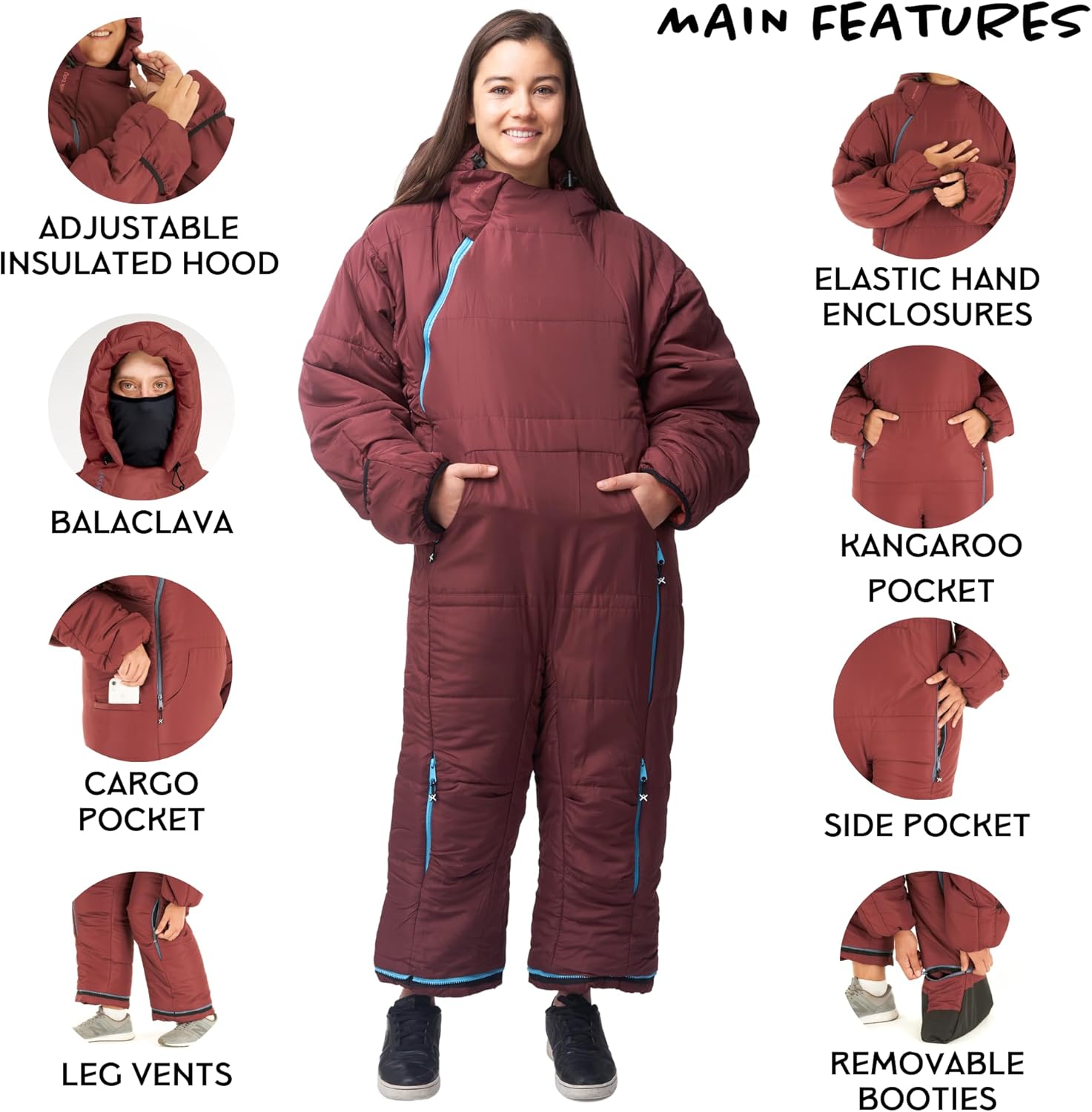 COMPLETE FREEDOM: This onesie is designed for people between 5ft 9 inches and 6ft 2 inches and up to 6ft 4 inches. Comes with adjustable insulated hood and easy access hand enclosures.