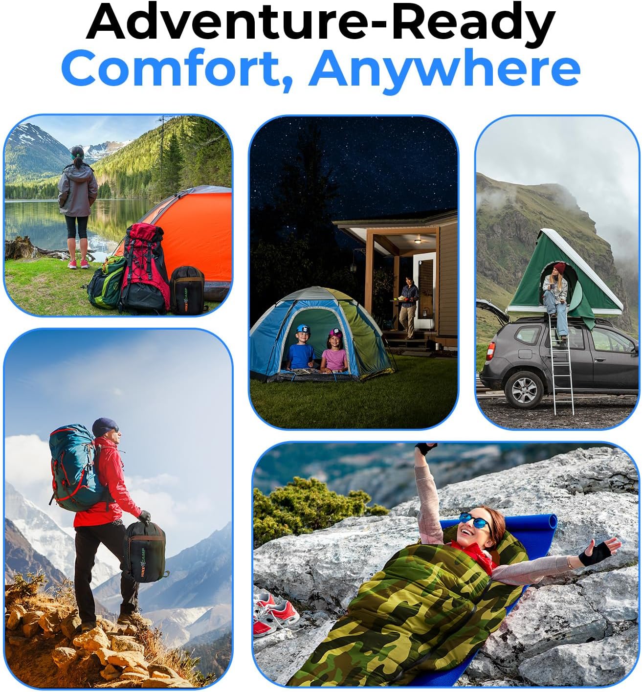 ALL-SEASON WARMTH: Designed for 4-season use, temperature rated 5-10°F, keeping adults, teens, and kids cozy in extreme weather conditions while hiking, camping, or traveling.