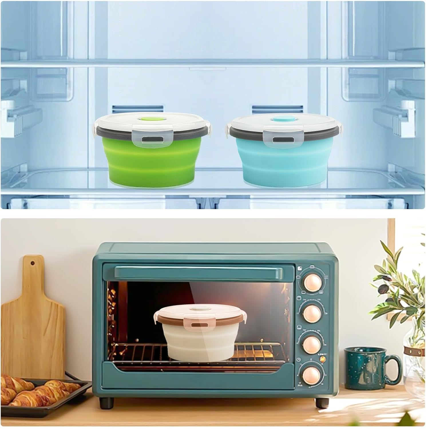 Camping food storage, travel lunch containers, office meal prep, picnic salad bowls, and RV organization. Use as collapsible lunch containers, camping bowls with lids, silicone freezer containers, or collapsible mixing bowls for camping. A reliable, space-saving addition to every backpack, boat, or kitchen.“