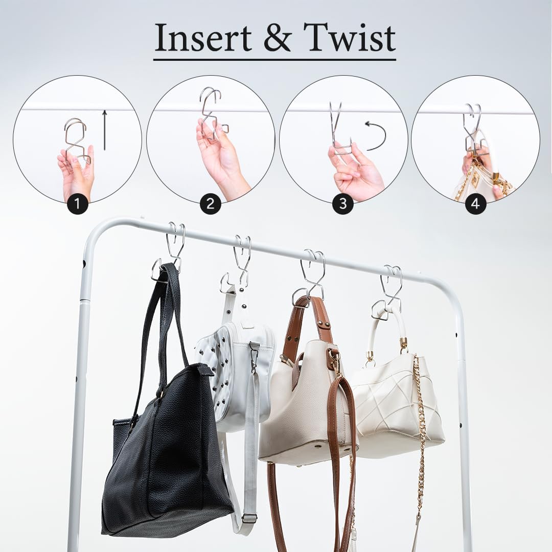Anti-Fall Design: Featuring a unique cross-lock hook structure, these metal purse organizers prevent your bags from slipping or falling off the rod. Perfect for peace of mind when hanging expensive handbags or delicate purses.