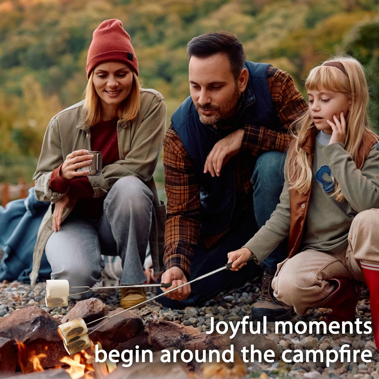 Safe for Everyone: Unlike traditional bamboo sticks, these reusable, extendable stainless steel sticks keep you at a safe distance from the fire. The black rubber caps prevent accidents during storage or travel.