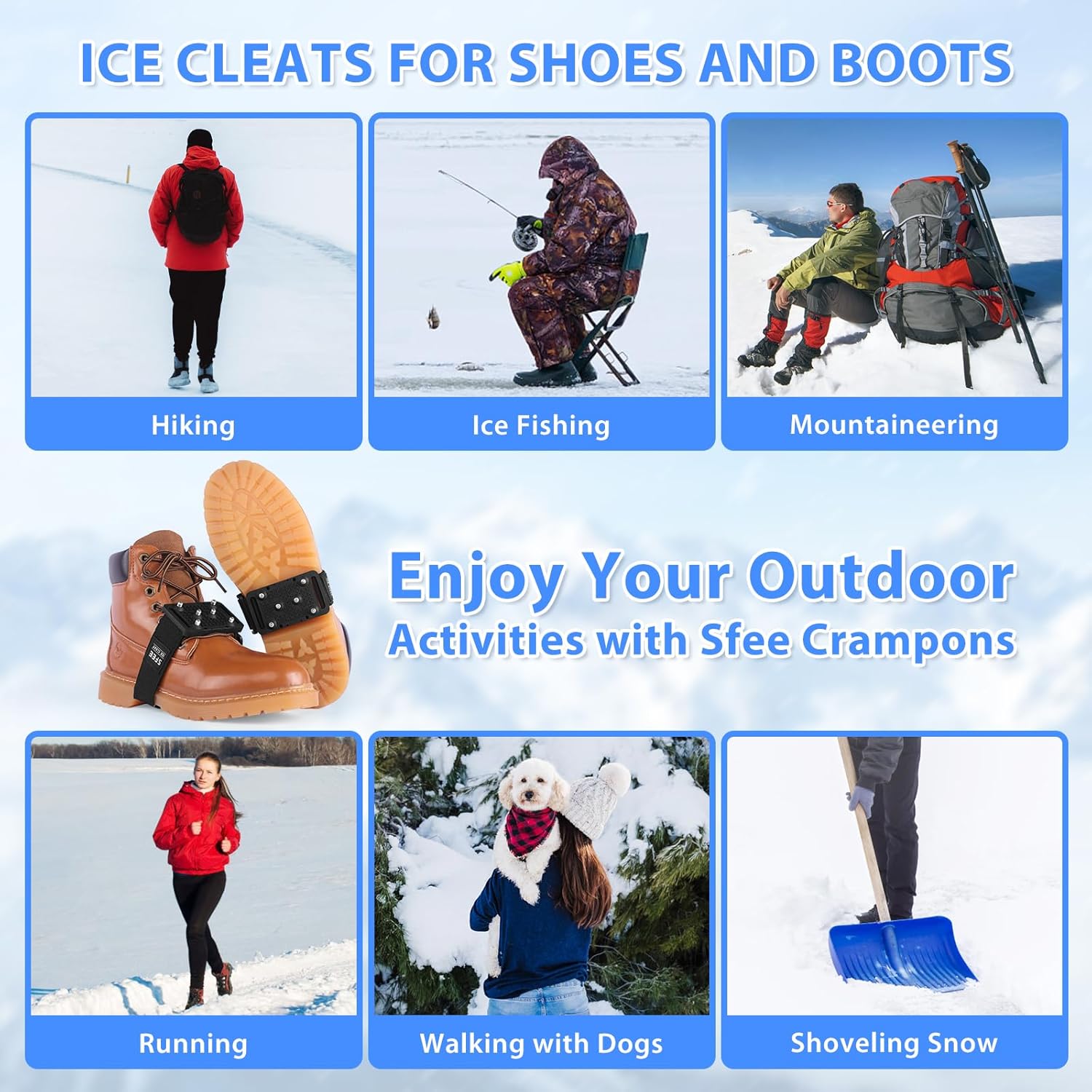 🥾 Sfee Ice Cleats Crampons, Easily Rotate Ice Grippers Ice Cleats for Shoes and Boots with Tungsten Studs Shoe Spikes — Review, Key Features & Current Price