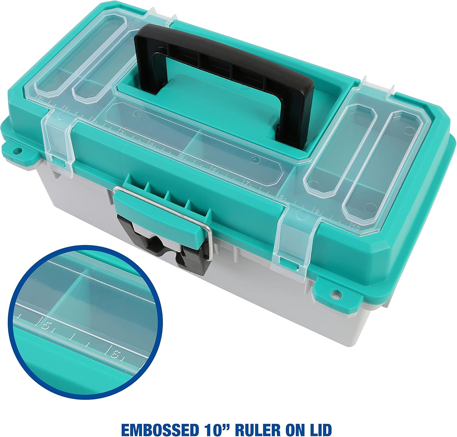 Convenient Built-In Ruler: Toolbox includes a 10″ embossed ruler on the lid, allowing you to measure bait, line, or other supplies while working on fishing, crafting, or DIY projects without carrying extra tools.