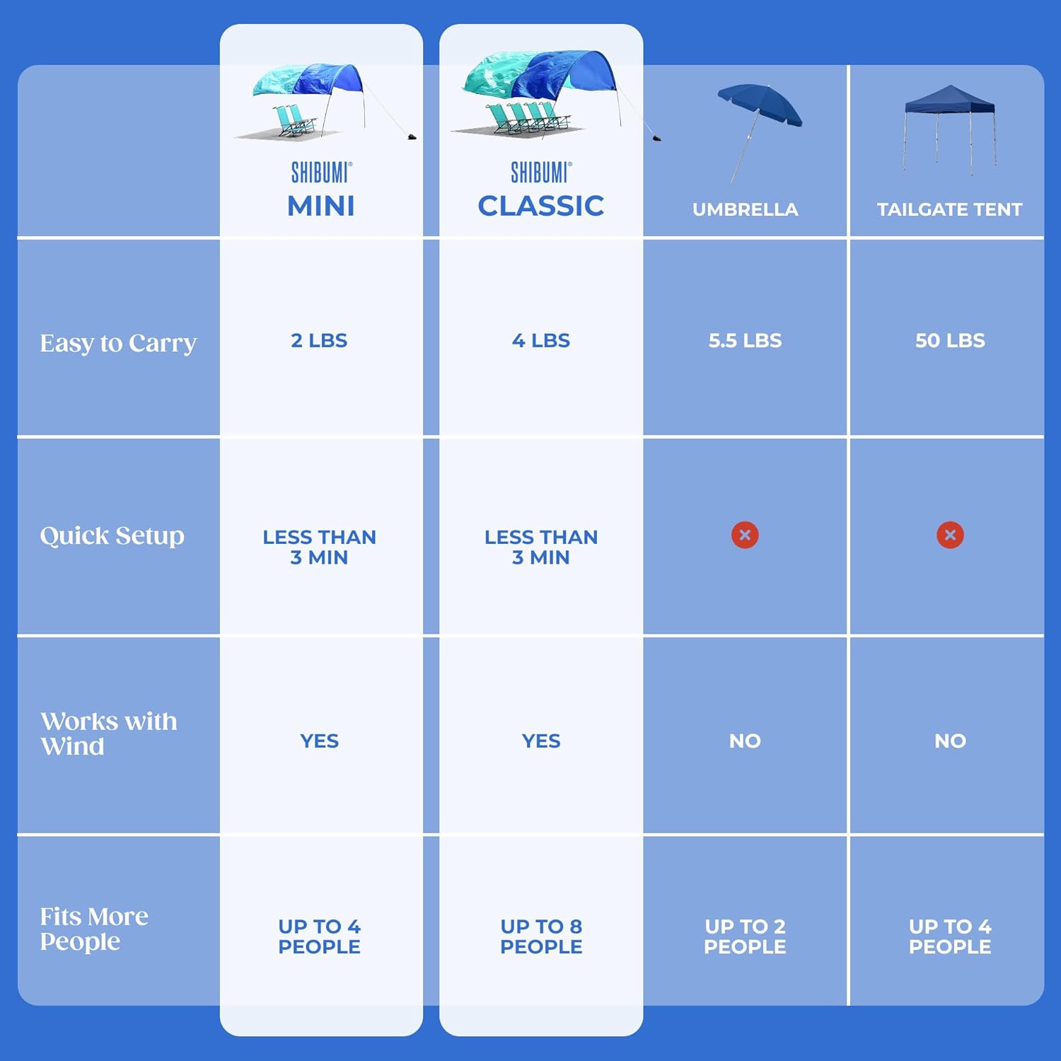 ULTRA-LIGHTWEIGHT & 3 MINUTE SETUP: Skip the complicated sun shades; set up the 4-pound, compact Shibumi Shade in just 3 minutes with one person. Includes a portable carrying bag for easy transport to any beach trip.