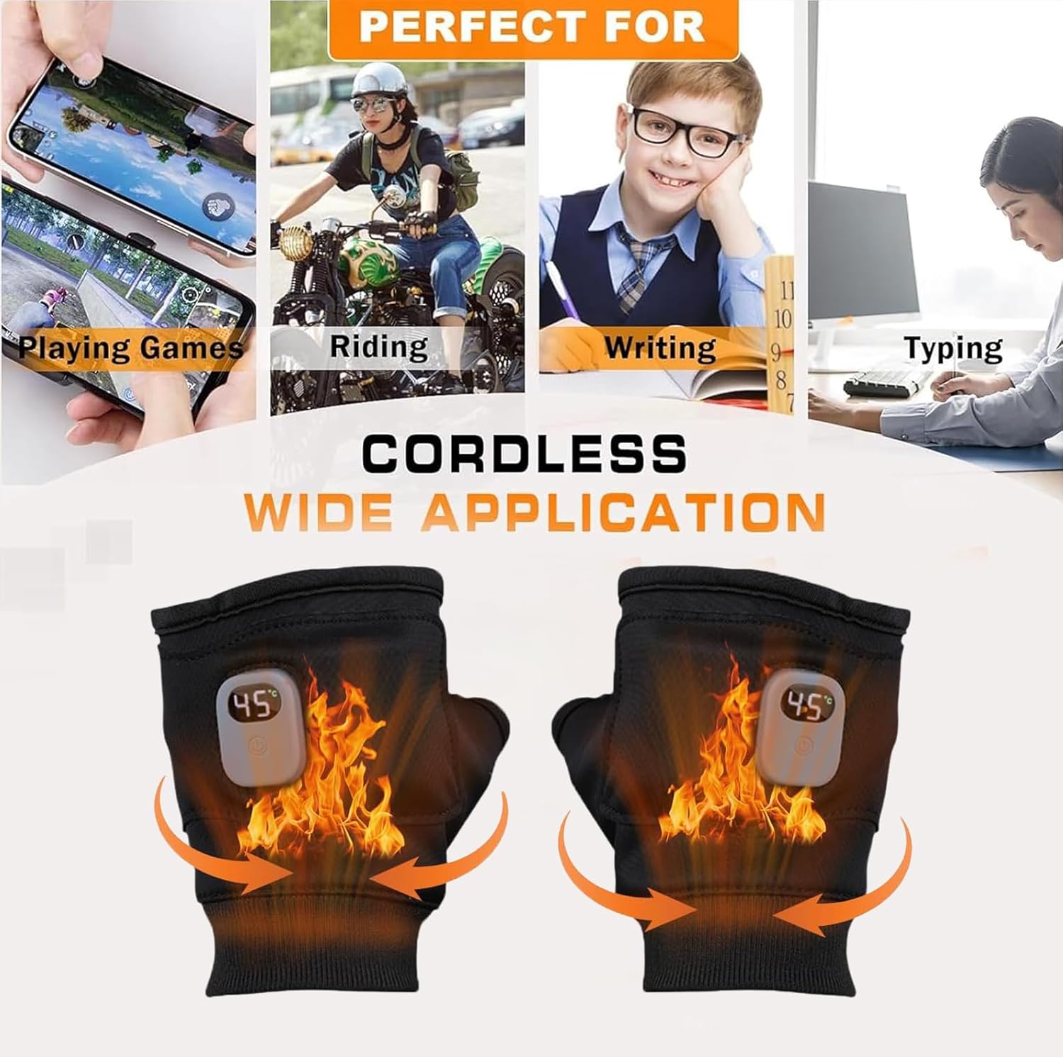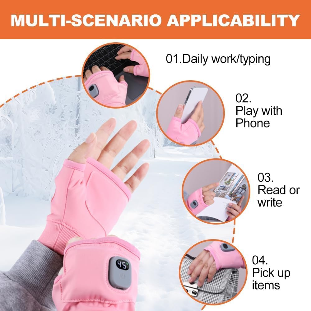 [ Portable Heating Gloves with Digital Display] : Enjoy warm and cozy hands on cold days with our smart heated fingerless gloves! Choose from three temperature settings, ranging from 45°C to 55°C, to meet your needs. Easily adjust the heat to find the perfect balance between comfort and usability.
