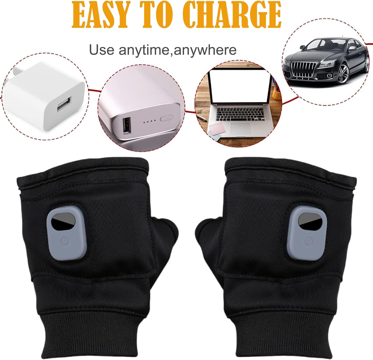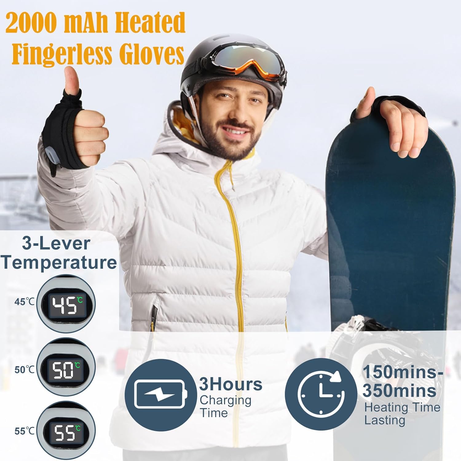 【Portable Heated Fingerless Gloves with Digital Display】Unlike traditional warm gloves, our heated gloves feature a fingerless design, which allows you to easily use smartphones and other electronic devices without taking off the gloves. The gloves are equipped with a windproof closure to distribute heat 360°, ensuring that there are no cold spots on your palms.