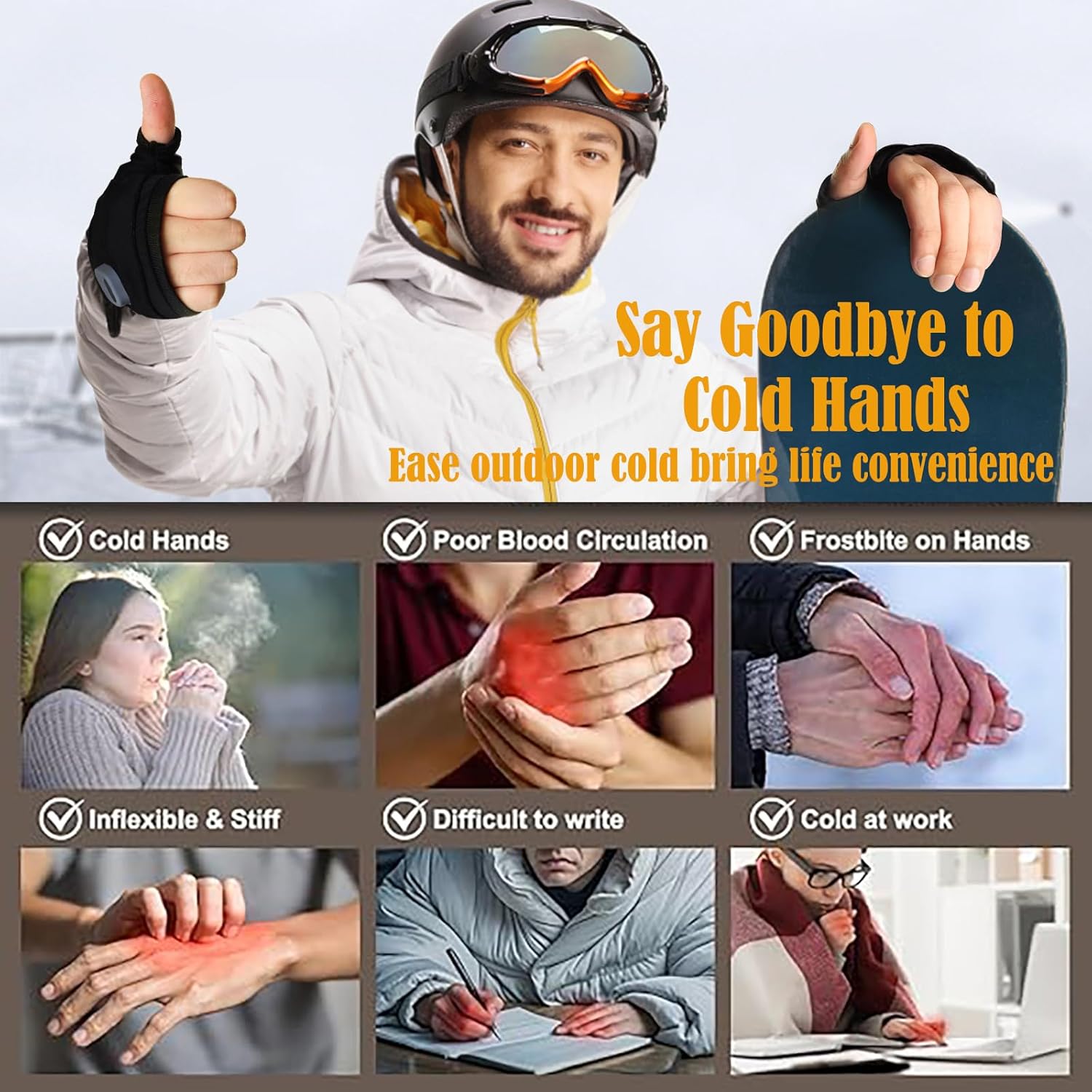 【Particularly suitable for students and officials】Prevent stiff fingers caused by cold weather. Wearing this portable heated glove, you can still write and type flexibly even without fingers