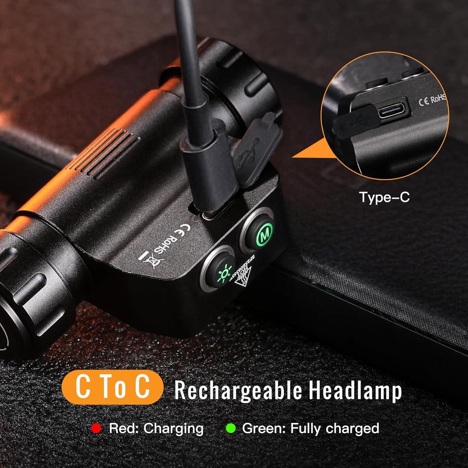 【2500 Lumens High Brightness】With 2500 lumens of powerful lighting, this Rechargeable Headlamp brightly illuminates dark trails and work areas, making it an ideal companion for night hikes, camping, or outdoor use.