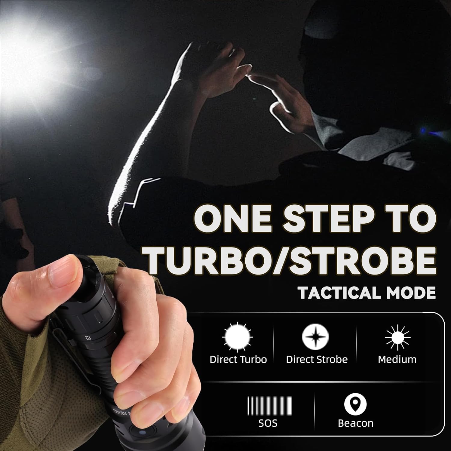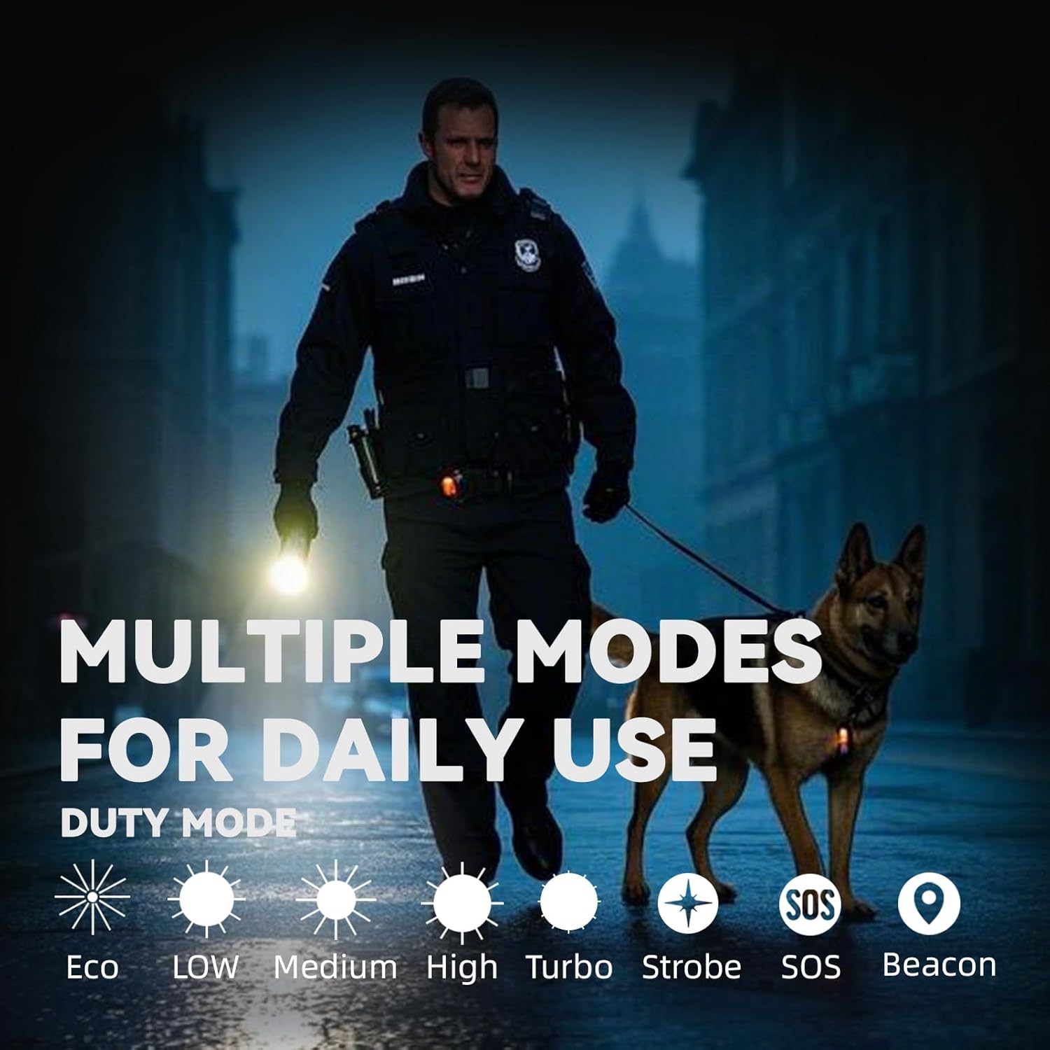PROGRAMMABLE MODES: Choose between tactical mode and duty mode to suit different situations. In tactical mode, you can quickly activate strobe and turbo modes for emergencies. In duty mode, more modes for daily use can be selected.
