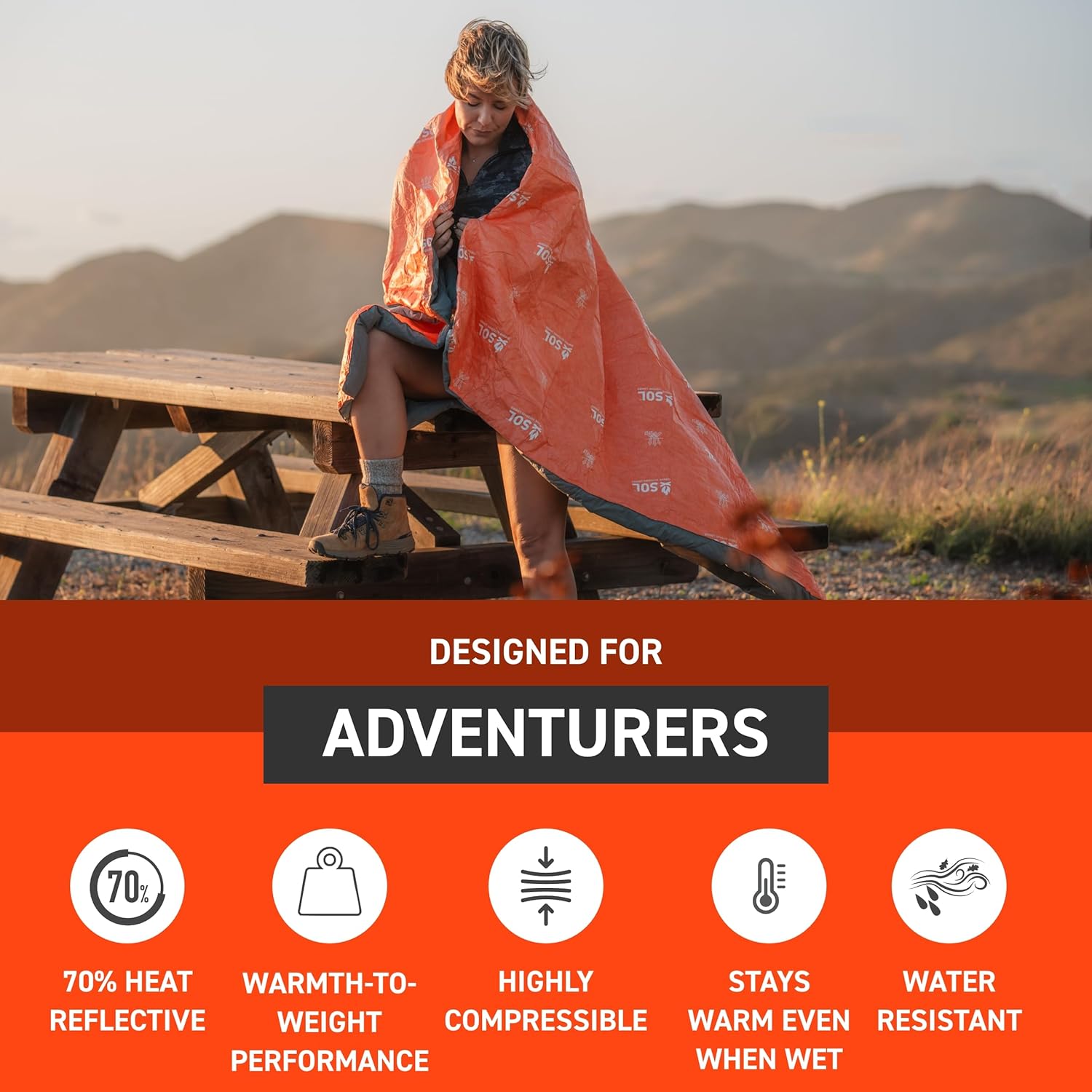 Durable Material: The SOL Escape Insulated Blanket is designed with Tyvek fabric, offering incredible durability, withstanding rocks, dirt, ice, and even pet paws