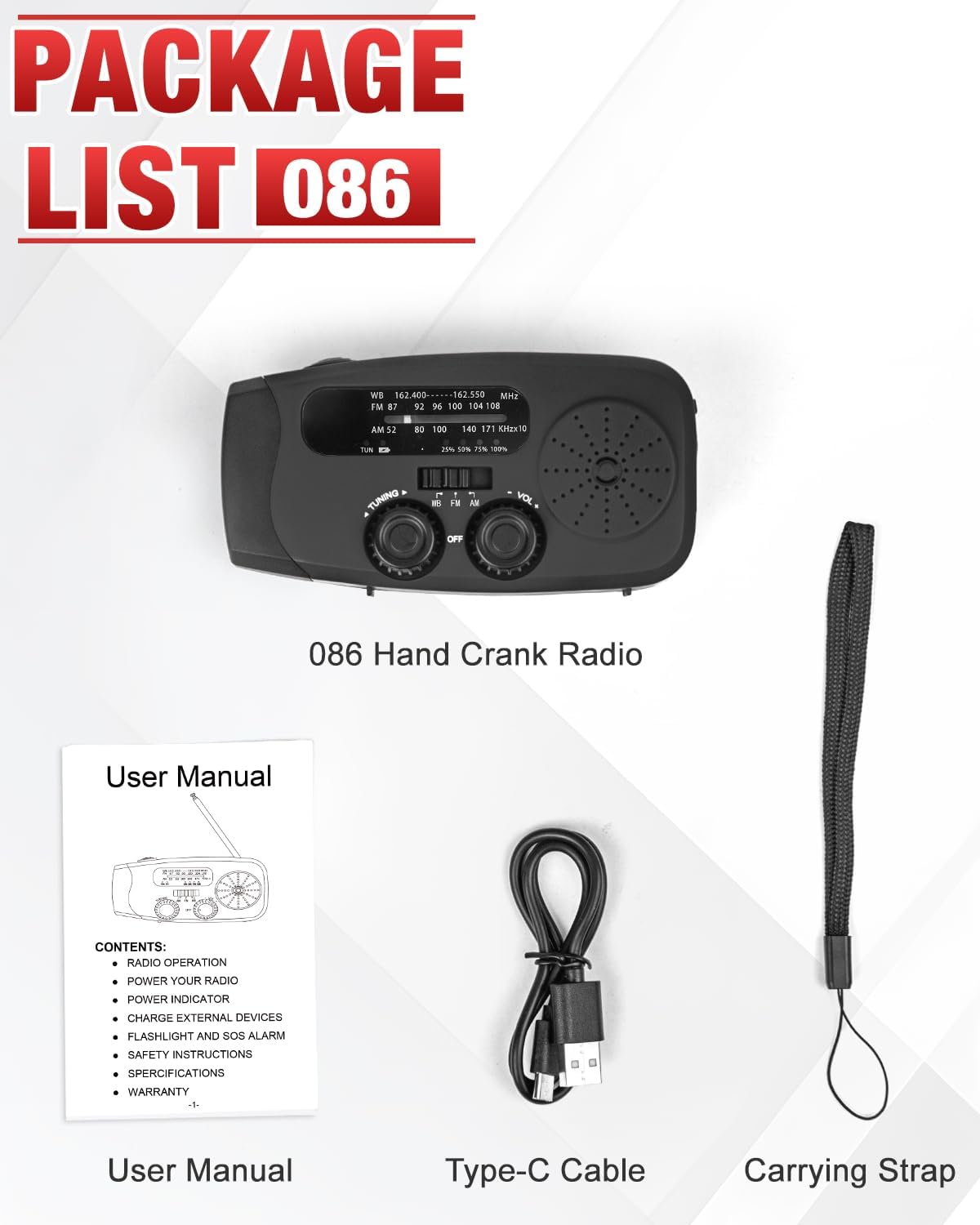 【 Access to AM/FM/NOAA Radio Stations 】This emergency hand crank radio pick up AM/FM bands enjoy your leisure time, and also access to NOAA weather broadcasts that report emergency weather information for your area and alert you to prepare in advance.