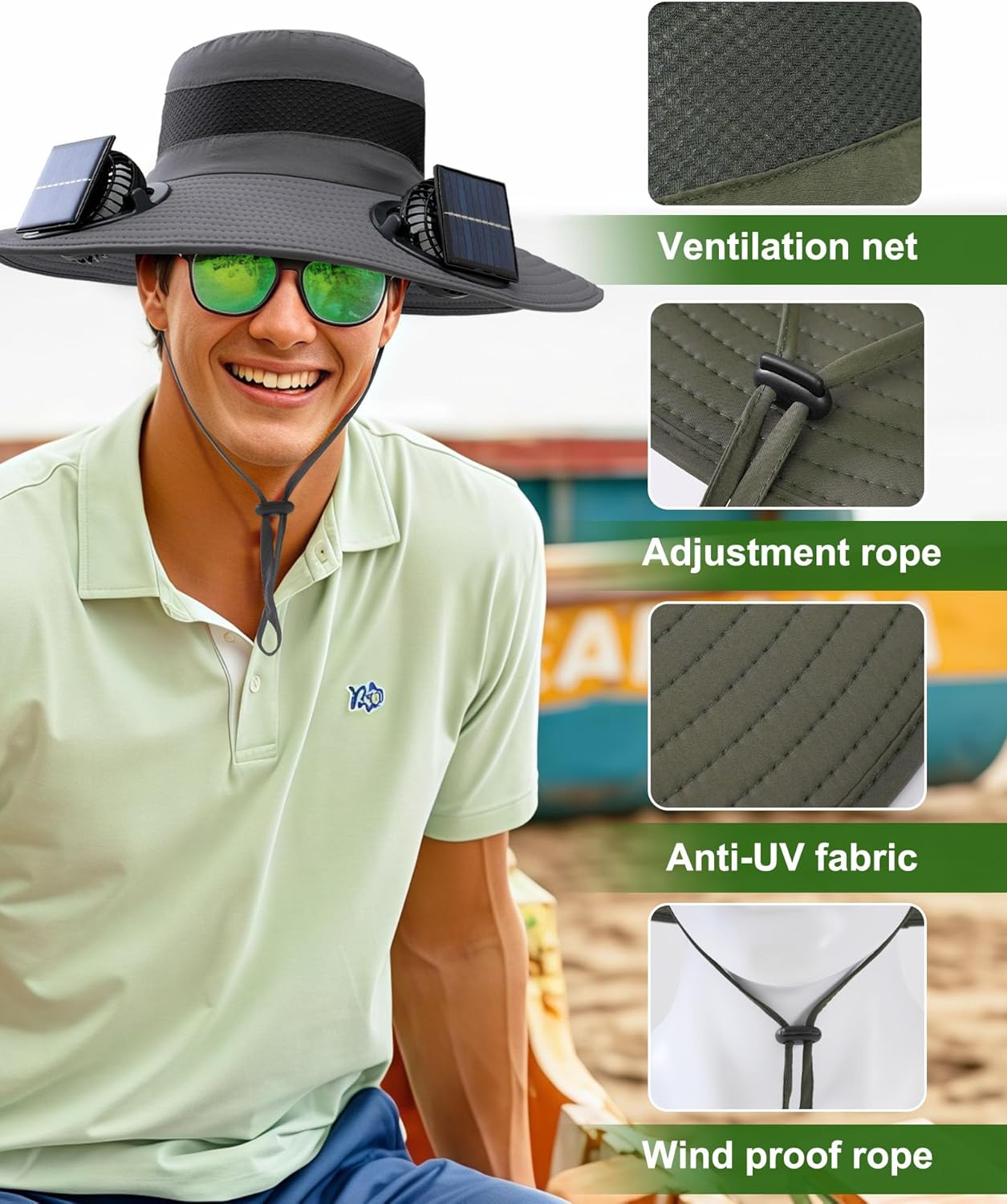 🥾 Solar Panel Powered Fan Built in Wide Brim Outdoor Fishing Sun Hat, USB Charging Men’s Gifts Lawn Mowing Accessories Gardening Essentials Backpacking Gear Must Have Beach Hiking Camping (Light Gray) — Review, Key Features & Current Price