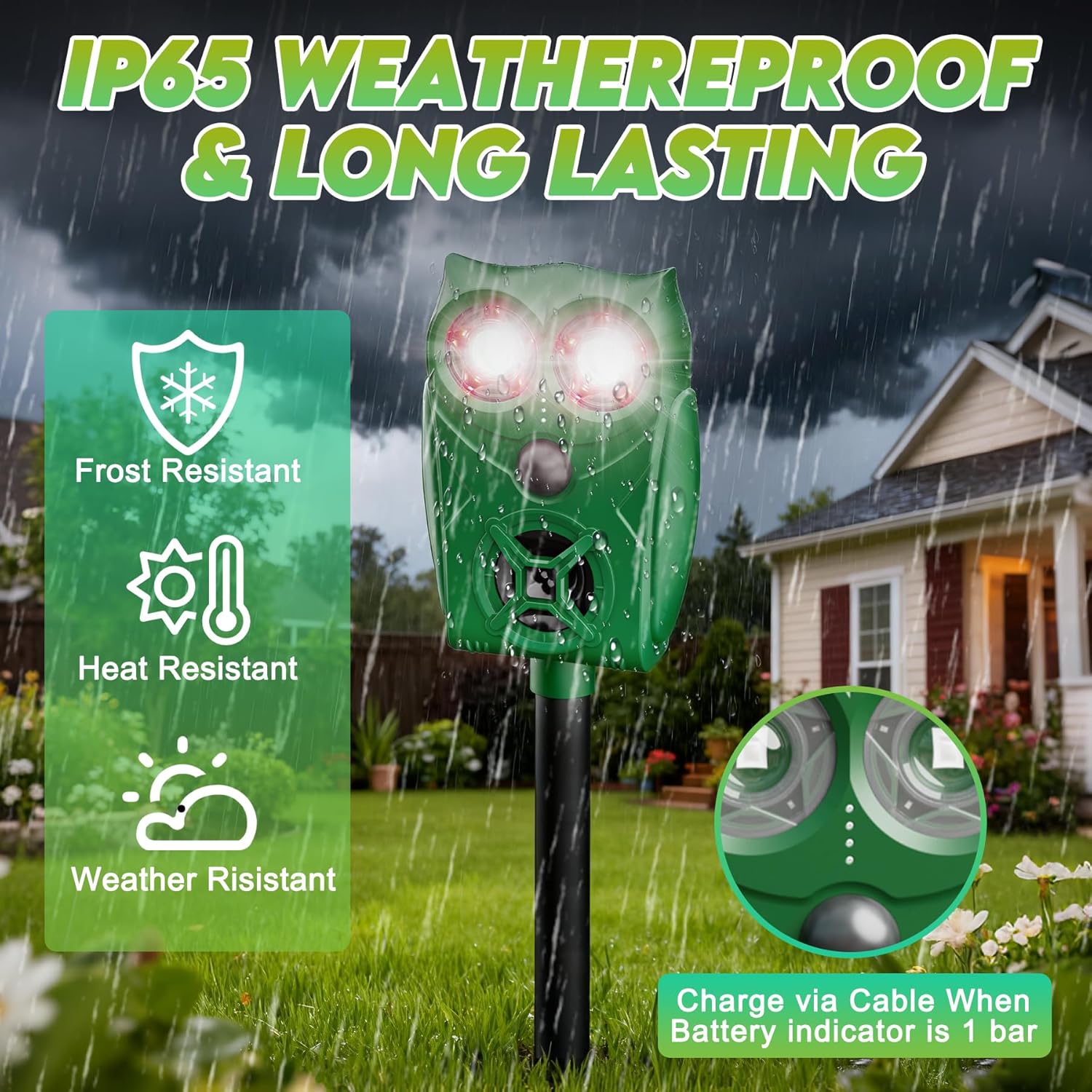 [Multi-Dimensional Visual Deterrence] Combining strobe lights with a dynamic LED flame-spiral effect, this ultrasonic animal repeller outdoor constantly varies in intensity and pattern. This changing visual stimulation prevents animals from growing accustomed to the device, ensuring long-lasting and effective protection
