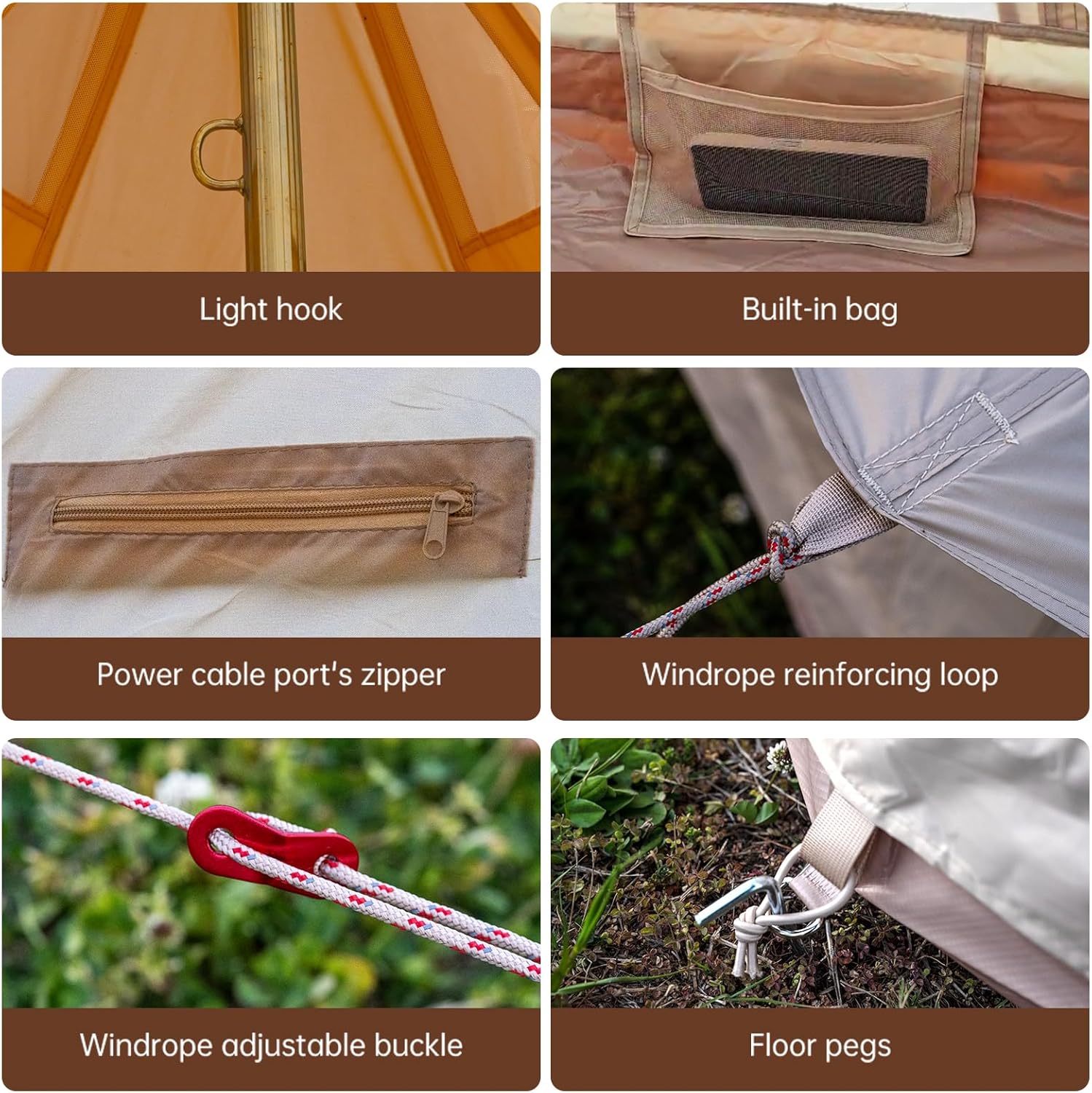 【Waterproof Oxford Fabric】Made from durable Oxford fabric, this bell tent is lighter and more waterproof than traditional cotton canvas tents. Provides excellent rain protection, wind resistance, and long-lasting outdoor durability for all-season camping.