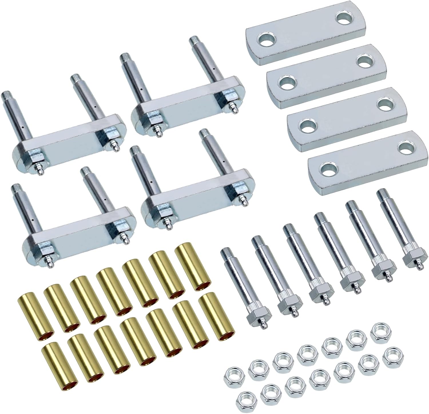 [Package contents] Products include shackle brackets *4, tin bronze bushings * 14, Greasable bolts *6,Trailer Leaf Spring Equalizers *2