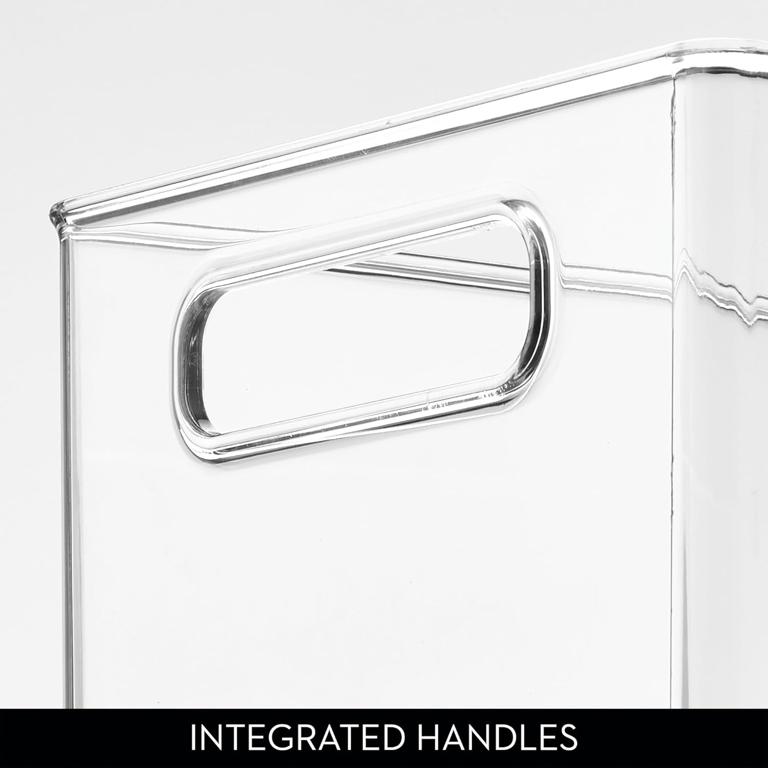 SMART STORAGE – The iDesign Plastic Fridge Bin corrals kitchen essentials in modern style; Its transparent construction offers unobstructed views of food items, and its open-top design allows for easy accessibility, simplifying item location and retrieval; From cabinets to countertops, the crystal-clear construction brings a hint of luxury to your daily routine while keeping clutter under control by conveniently storing an assortment of kitchen or pantry essentials; Set of 2