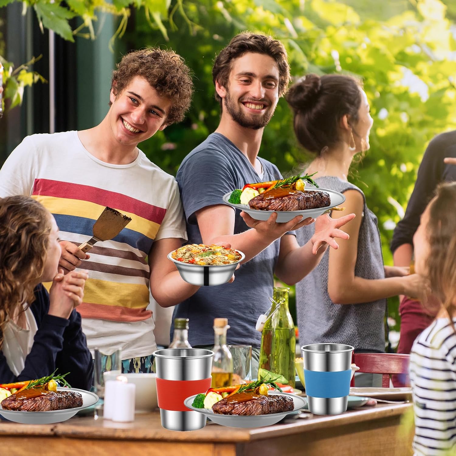 【Camping Accessories】 – Perfect for small groups or families, the camping utensils set has a 4-person capacity. package includes 4 x Dinner plates , 4 x Cup(With Sealing Cover ) ,4 x Bowls , 4 x Straws and cleaning brushes,4 x Cutlery (Knives, spoons and fork).