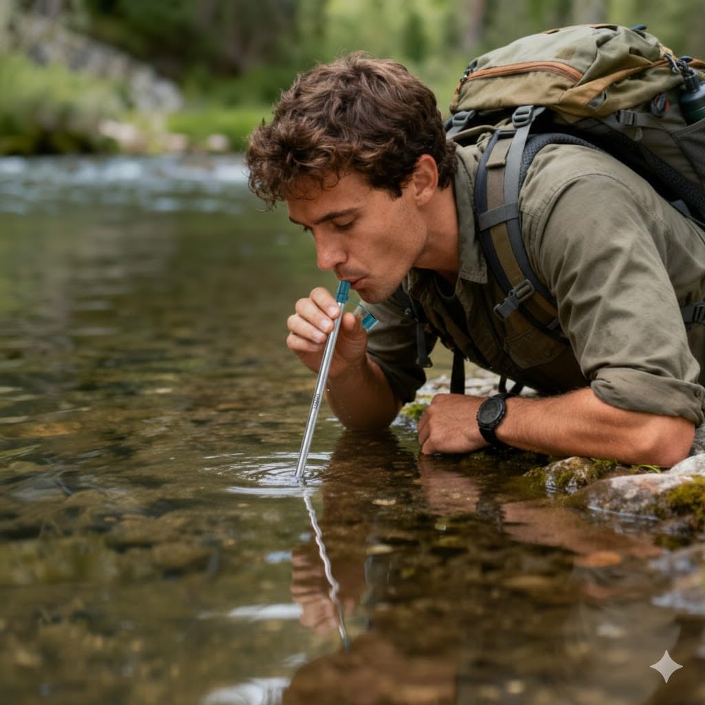 【Instant Safe Drinking in Emergencies】 Equipped with a 0.1μm filter, this Survival straw / camping water filter filters 99.999% of bacteria, microplastics, and contaminants—plastic straws offer zero purification, useless in emergencies. No boiling needed for wild stream water, flood-affected water, or unfiltered tap water during power outages, making it a top water filter for camping / water filter hiking / backpacking water filter for outdoor adventures and emergency survival.