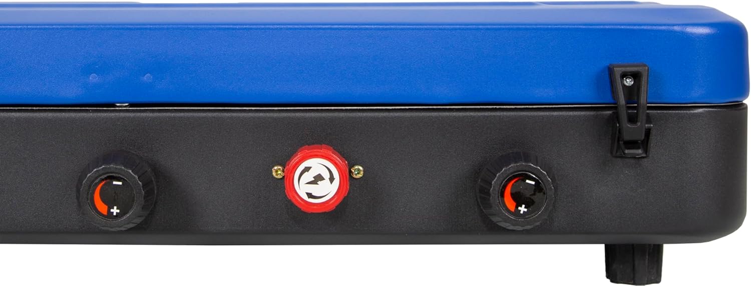 Two oversized 25,000 B.T.U. stainless steel burners with individual wind screens and one 14,000 B.T.U. center burner