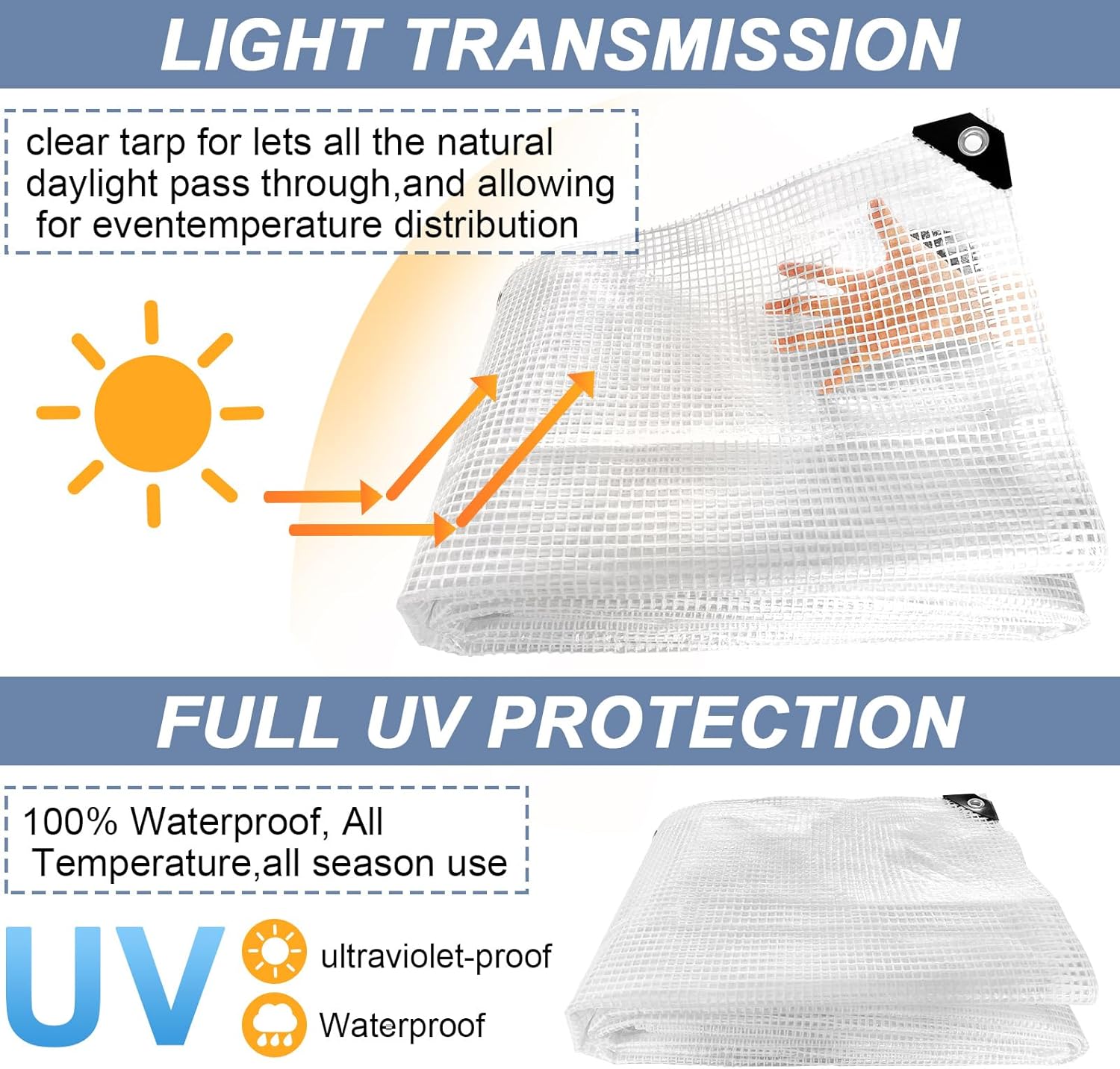 Clear Tarp: Greenhouse transparent tarp,tough polyethylene tarp,waterproof and dustproof,easy to unpack and install, foldable into rolls