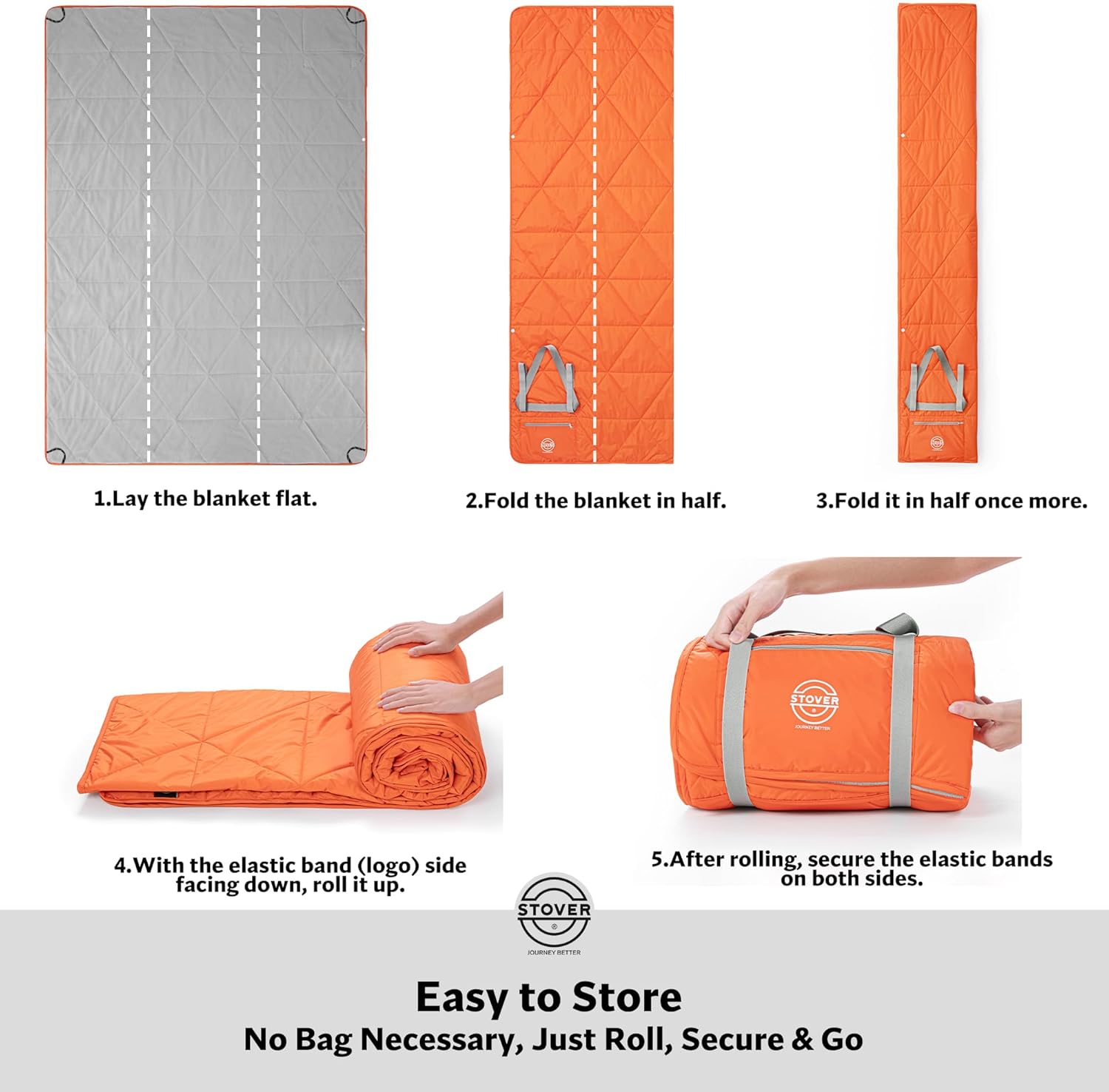GENEROUSLY SIZED & PORTABLE: Measuring 79” x 55”, this large camping blanket comfortably seats 2-4 adults. And it easily rolls up with the attached elastic bands – no bag required.