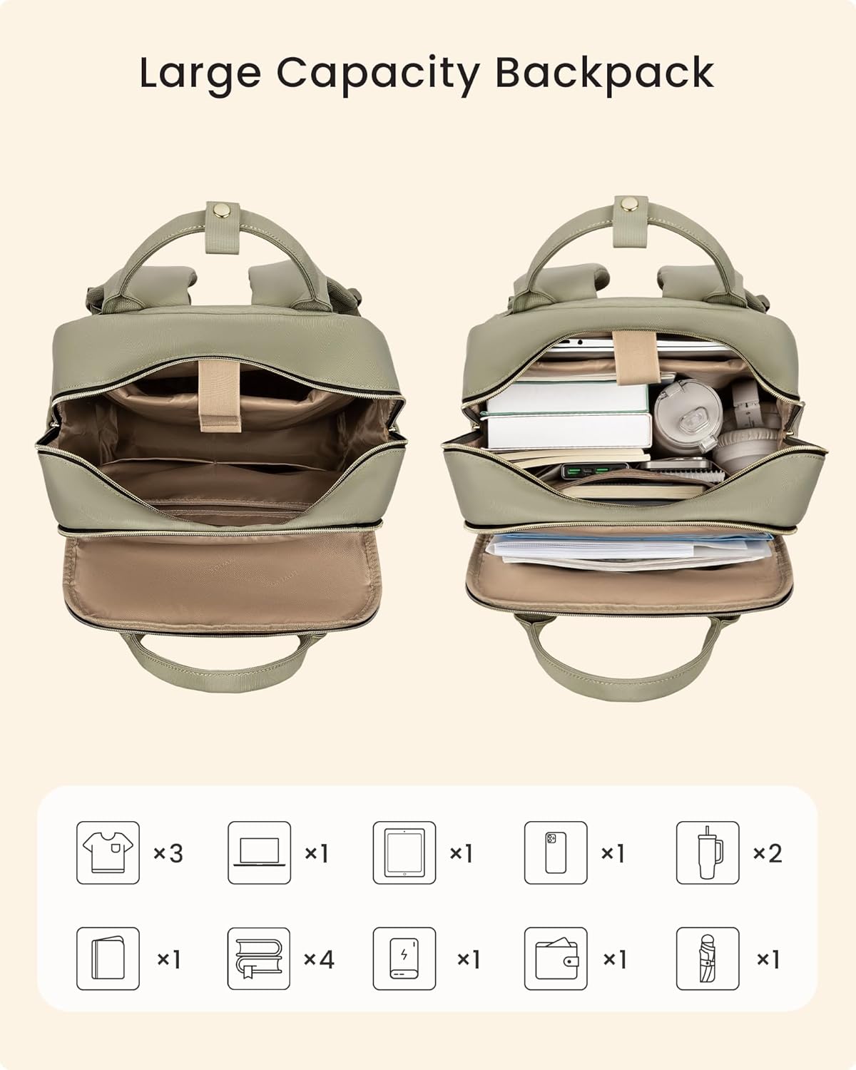【27L HUGE CAPACITY 】Say Goodbye to Packing Anxiety! With an extra-large 27L capacity, this backpack easily fits your laptop and other electronics, wallet, notebooks, lunch, cosmetics, clothing, and all your daily or travel essentials.