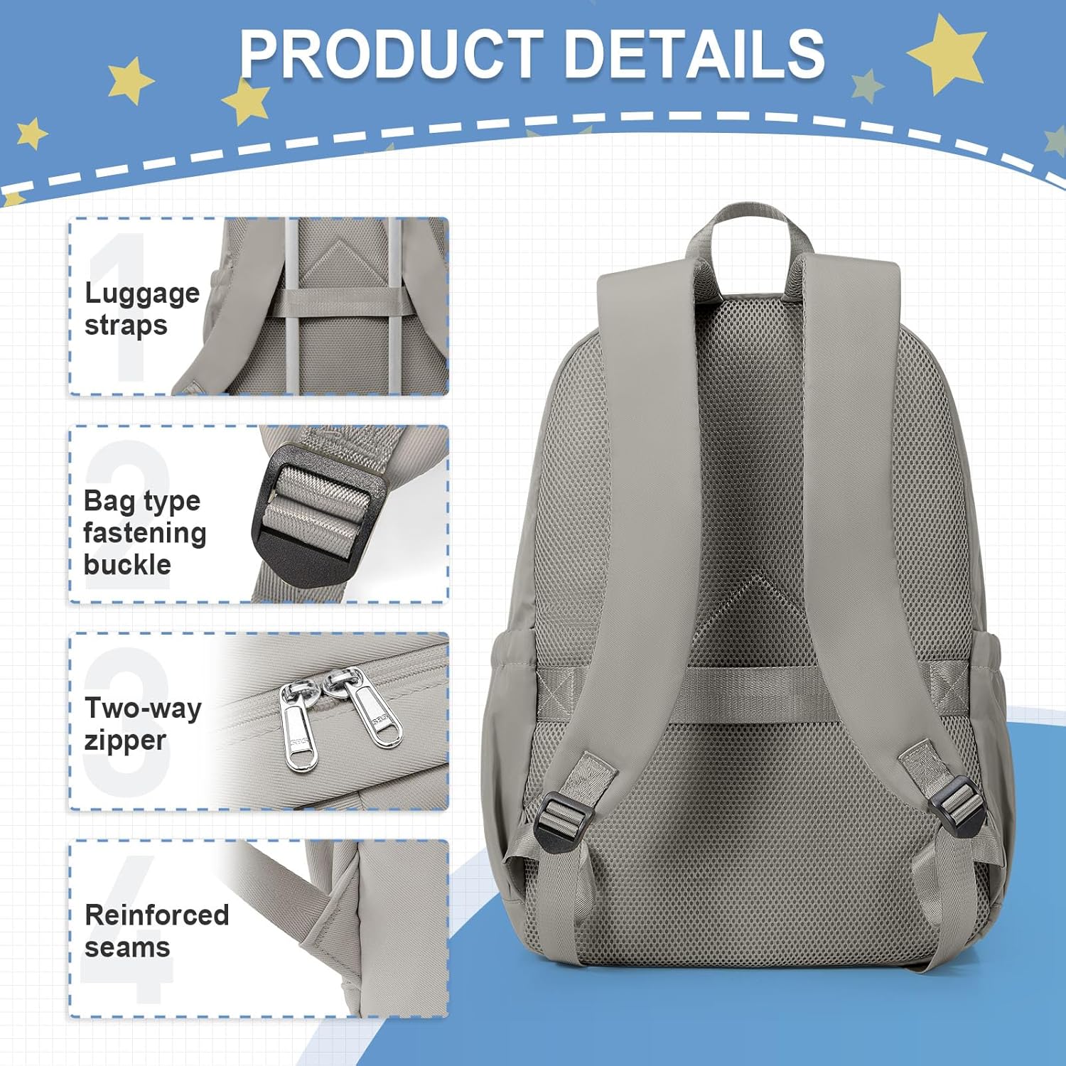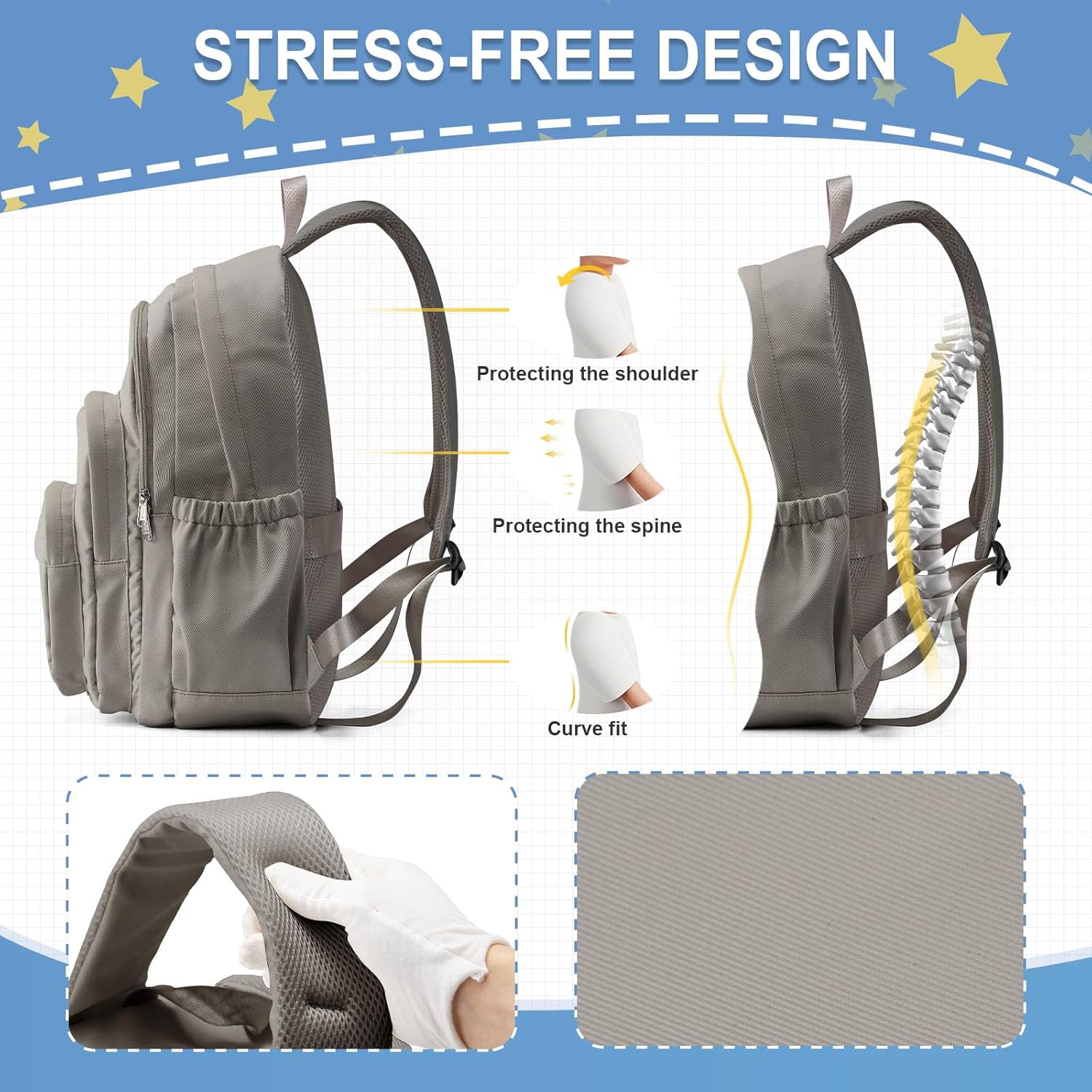 【Comfort shoulder straps】This Casual Daypack has a breathable honeycomb cotton filled strap + adjustable chest buckle design, which scientifically disperses shoulder pressure and does not feel stuffy or tight on the shoulders when carried for a long time.