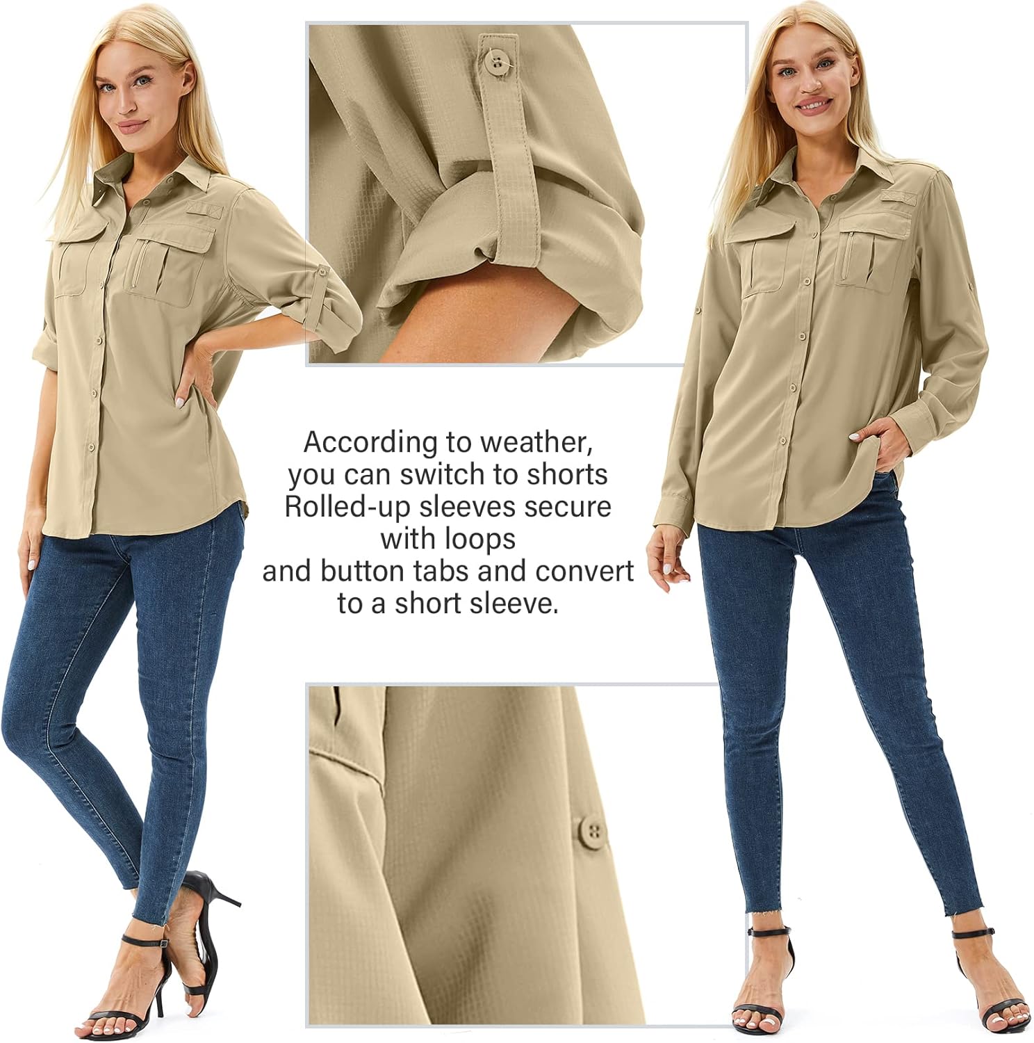 Button down Shirts for Women Casual Hiking Shirts Women Fishing Shirt spf Long Sleeve Shirts for Women Outdoor Clothing